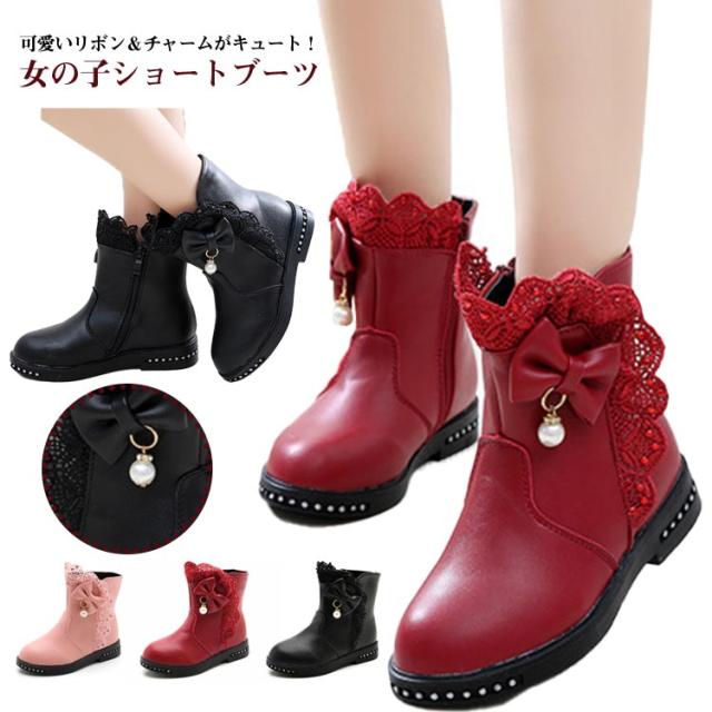 | 可愛いリボン&チャームがキュート!女の子ショートブーツ フラットソールで安定感があって歩きやすいから安心。 ファスナー付で脱ぎ履きしやすく一人でも履けちゃう! 心地良い手触りで快適な起毛裏地。 耐摩耗性、滑り止めなどに優れたアウターソール。 レース&リボンのデザインがアクセントになります♪ 入園?入学式?卒園?卒業式.発表会 七五三?結婚式やセレモニーに。 | |