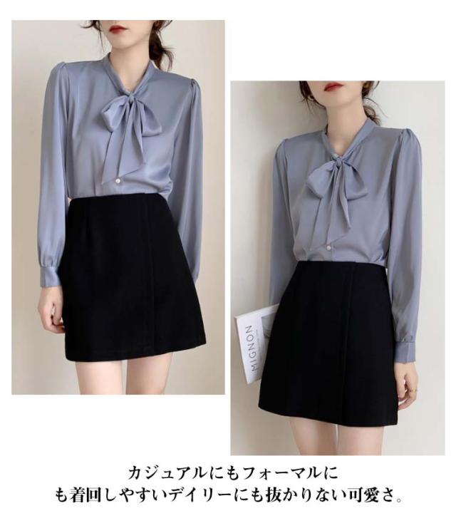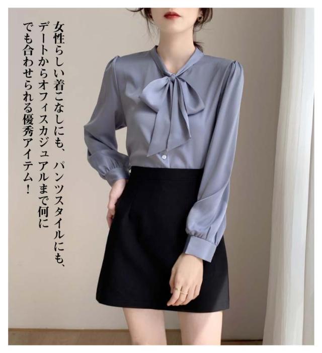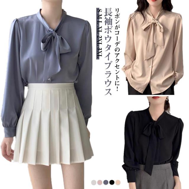 フォーマル 春 ブラウス ボウタイ付き 長袖 ボウタイブラウス OL リボン ボリューム袖 卒業式 秋冬 オフィス シャツ 大きいサイズ シフォン トップス ブラウス 無地 入学式 通勤 ママ 母 リボン 体型カバー 着?せ