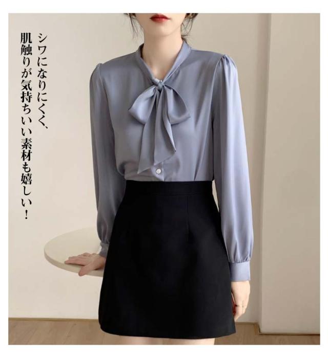 | リボンがコーデのアクセントに!長袖ボウタイブラウス カジュアルにもフォーマルにも着回しやすいデイリーにも抜かりない可愛さ。 ふわっととろみ感のある高級感のある生地感は、オールシーズンに活躍するおりこうブラウス♪ シワになりにくく、肌触りが気持ちいい素材も嬉しい! 女性らしい着こなしにも、パンツスタイルにも、デートからオフィスカジュアルまで何にでも合わせられる優秀アイテム! | |