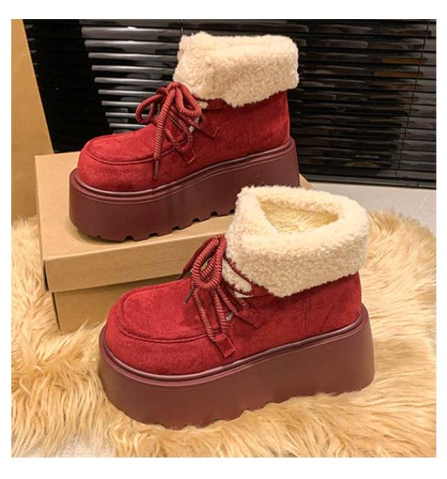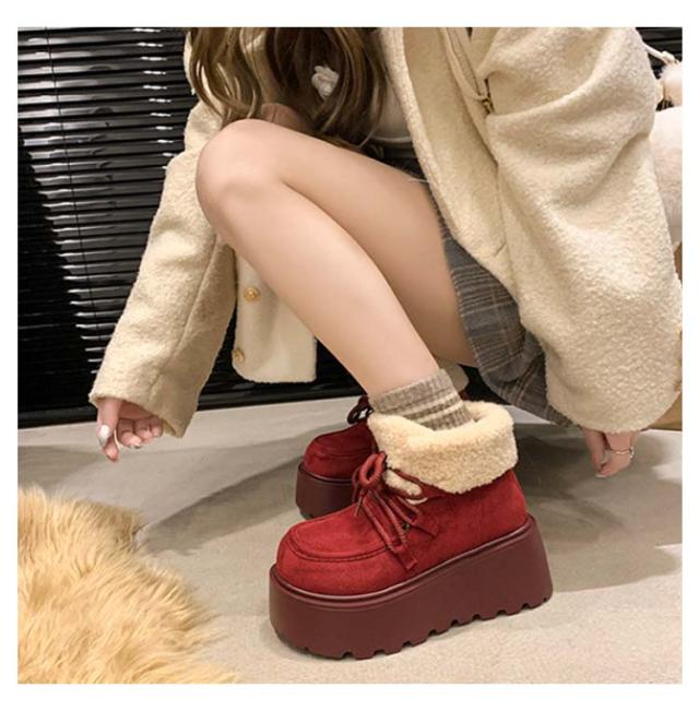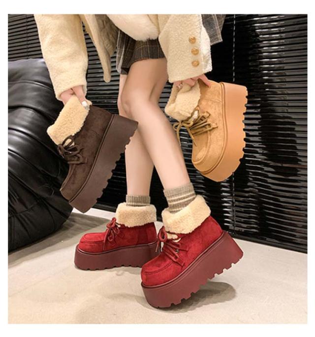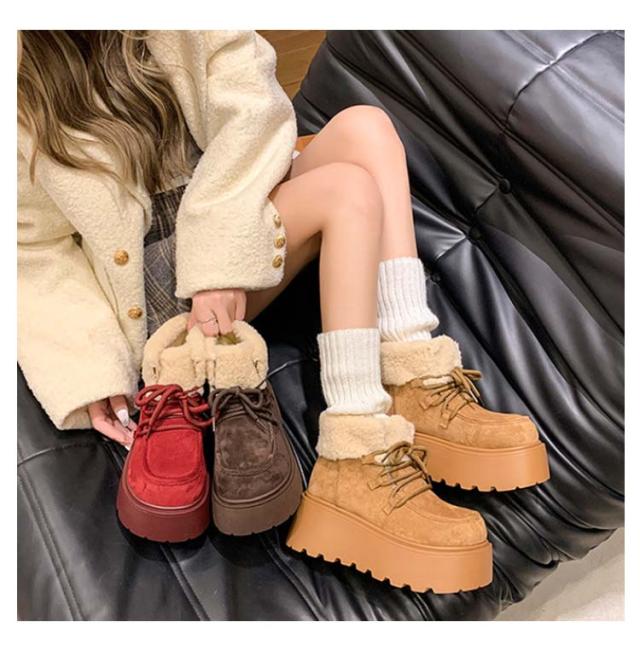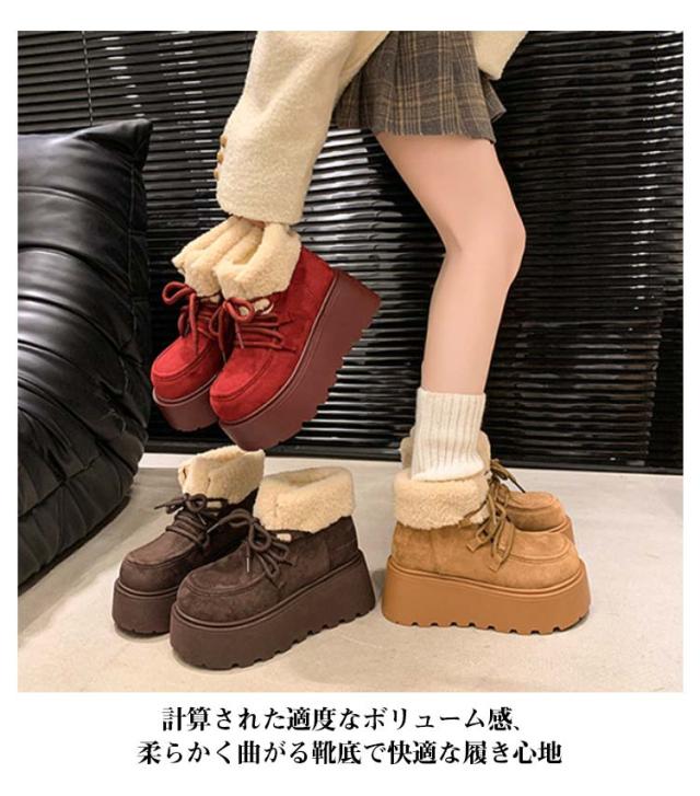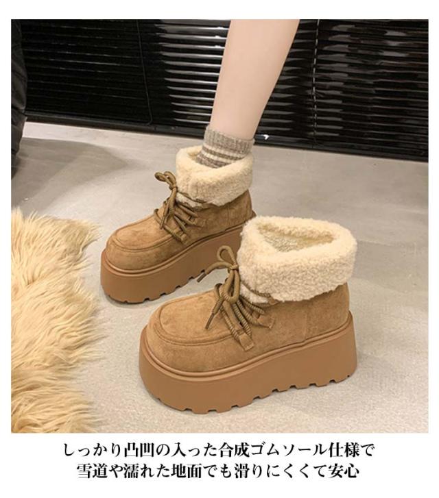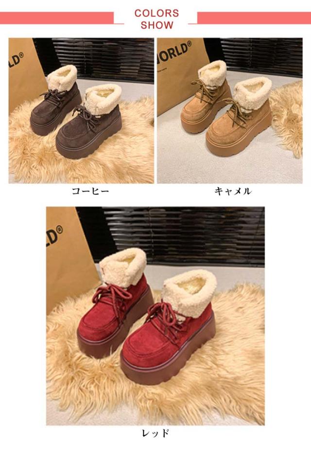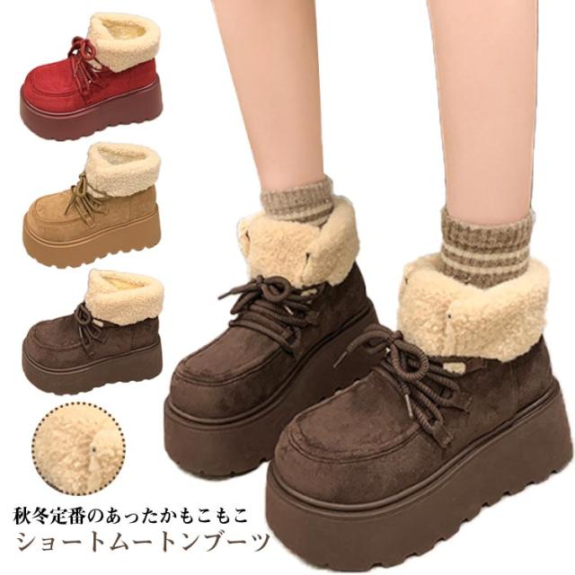 ムートンブーツ ショートブーツ スノーブーツ もこもこ ムートンブーツ 厚底 もふもふ ムートンブーツ 合成スエード 厚底 裏起毛 防寒 防寒 レディース 裏起毛 靴 シューズ 可愛い 履きやすい 歩きやすい 美脚 脚長効果 スリッポン 疲れない 痛くない 冬 秋 靴