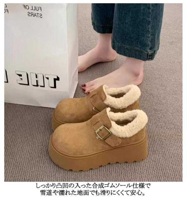 | 22.5cm〜25cm 7cm厚底 レディーススエードショートブーツ あったかもこもこ裏起毛ショートムートンブーツ 内側はつま先からボアが足を包み込み、歩き心地もとっても楽ちんの一足 しっかり凸凹の入った合成ゴムソール仕様で雪道や濡れた地面でも滑りにくくて安心 計算された適度なボリューム感、柔らかく曲がる靴底で快適な履き心地 | |
