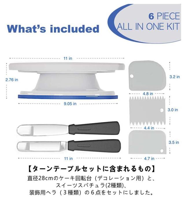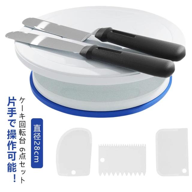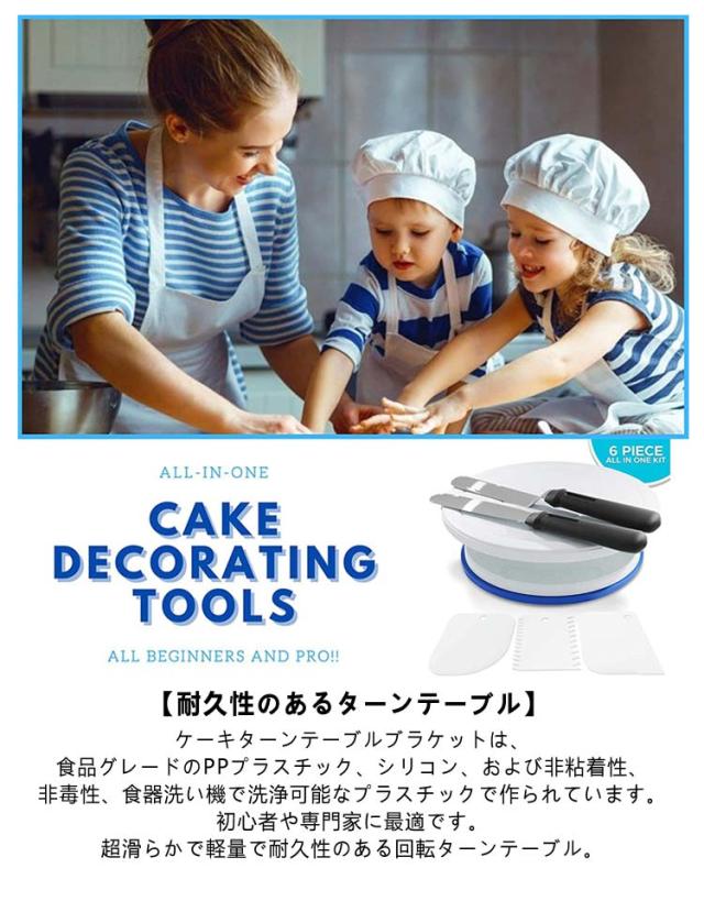 デコレーション用 6点セット 滑り止め セット ケーキ回転台 ケーキ装飾台 回転台 ターンテーブル ベーキング ツール 軽い ケーキ作り用 目盛り PPプラスチック お菓子 カラーボックス付き ケーキスタンド ケーキ 作り 料理 手作り バレンタイン クリスマス