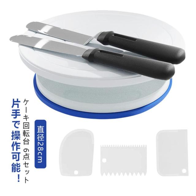 | 片手で操作可能! ケーキ回転台 6点セット 直径28cm 360度自由回転、片手で操作可能。 ・シンプルでスタイリッシュ ・軽量で耐久性のある ・取り外し可能な部品 【食品グレード材料】 食品グレードの環境に優しい材料で作られた、ケーキターンテーブルツールは軽量で耐久性があります。食品グレードのテストに合格したため、より安心して使用できます。 【高い柔軟性】 軸受がスムーズでラクに回転でき、無声です、プラットフォームは簡単にアイシング、ボーダー、コーミング、レベリングのためにどちらかの方向に回転します。ベースが安定しているので、ケーキ作りにとても重宝な道具です。 【耐久性のあるターンテーブル】 ケーキターンテーブルブラケットは、食品グレードのPPプラスチック、シリコン、および非粘着性、非毒性、食器洗い機で洗浄可能なプラスチックで作られています。初心者や専門家に最適です。超滑らかで軽量で耐久性のある回転ターンテーブル。 【ターンテーブルセットに含まれるもの】直径28cmのケーキ回転台(デコレーション用)と、スイーツスパチュラ(2種類)、装飾用ヘラ(3種類)の6点をセットにしました。 | |