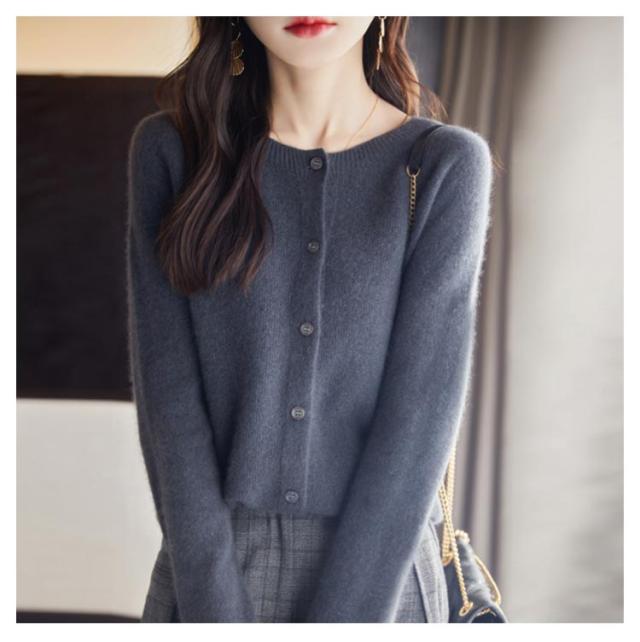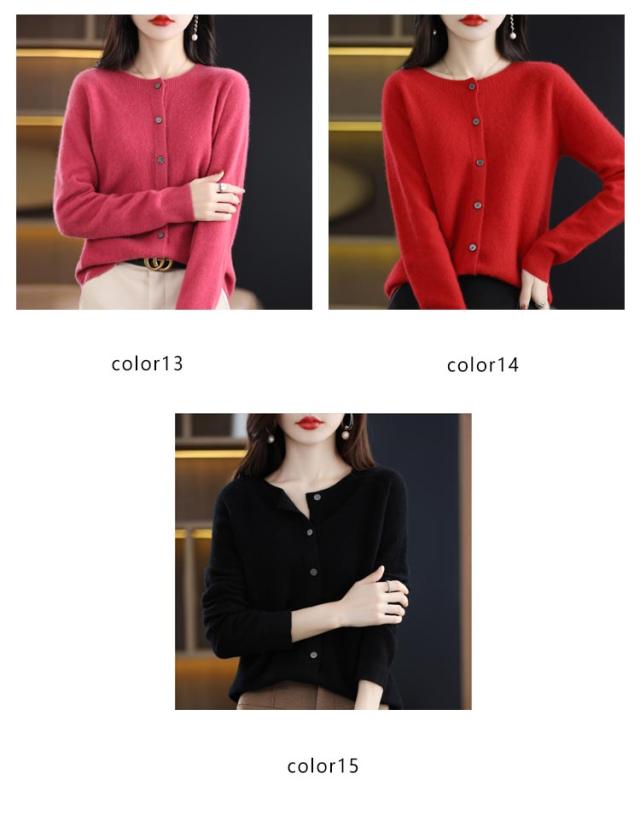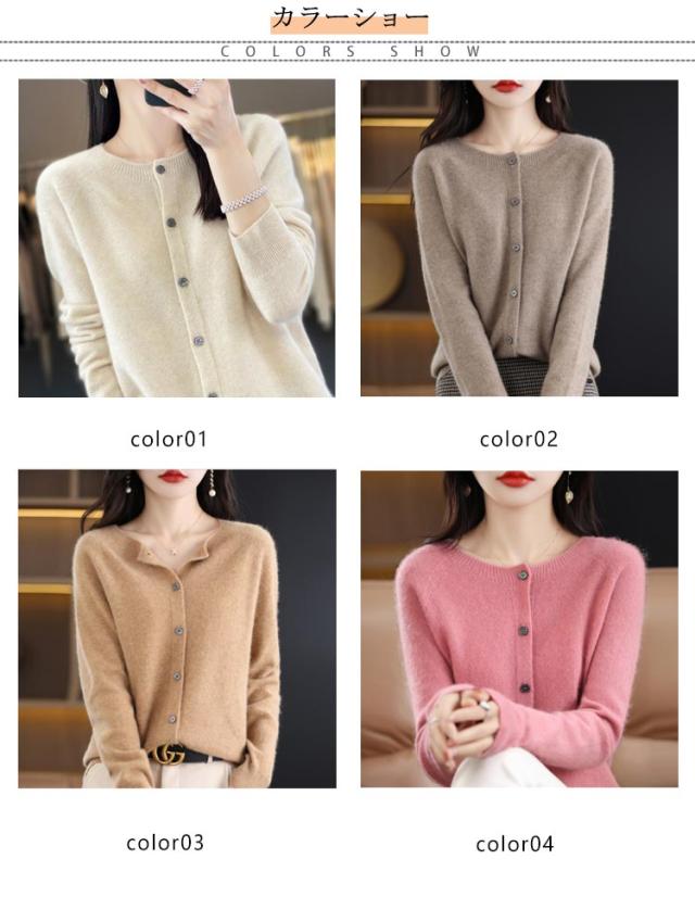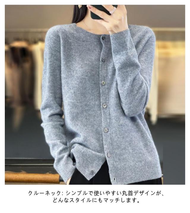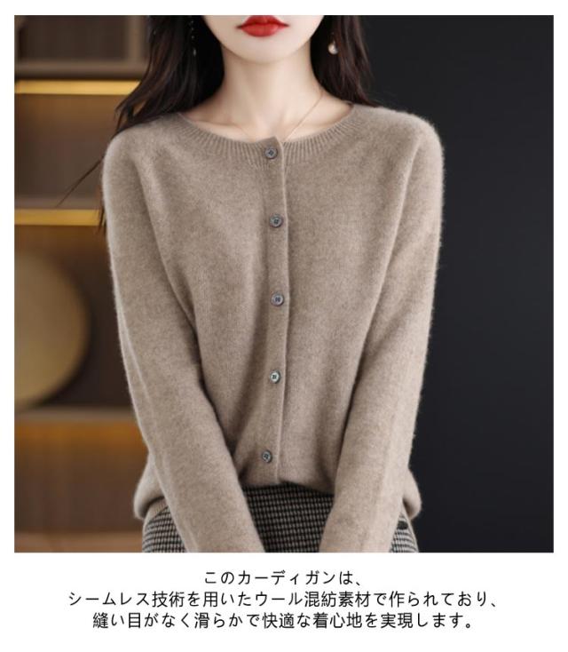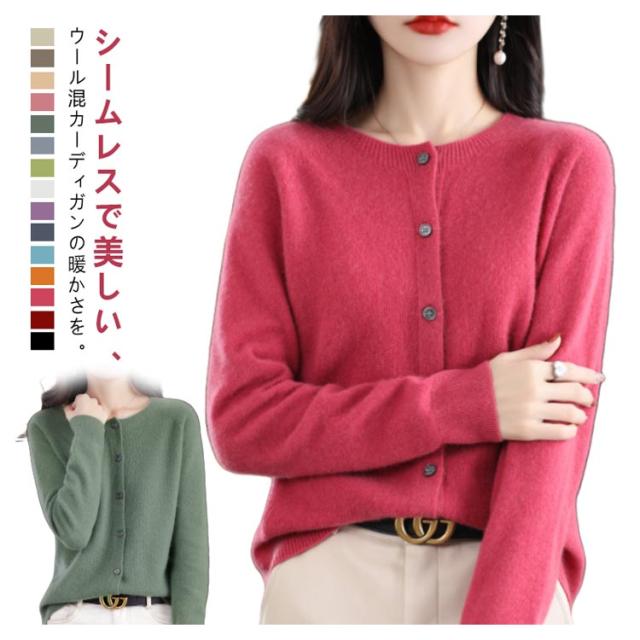 ウール 長袖 セーター カーディガン ニット 秋冬 ウール混】 起毛感 無縫製 保温 トップス レディース ニットカーデ ニットセーター ラウンドネック ニットカーディガン 体型カバー リブ編み きれいめ 【全15色 柔らかい 大きいサイズ 着痩せ 秋