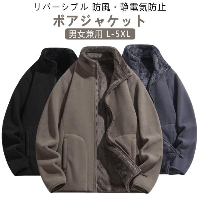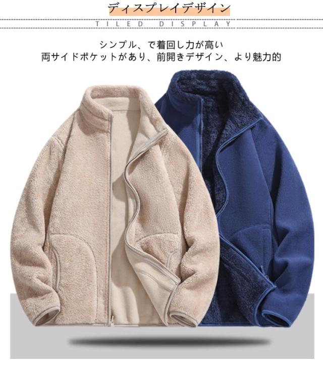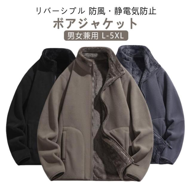 アウター 裏起毛 メンズ ボア ボア アウター ブルゾン 秋冬 リバーシブル 裏ボア ジャケット 長袖 ボアアウター ボアコート フリース コート 厚手 ミドル丈 ショート丈 レディース 男女兼用 無地 シンプル ポッケト 大きいサイズ