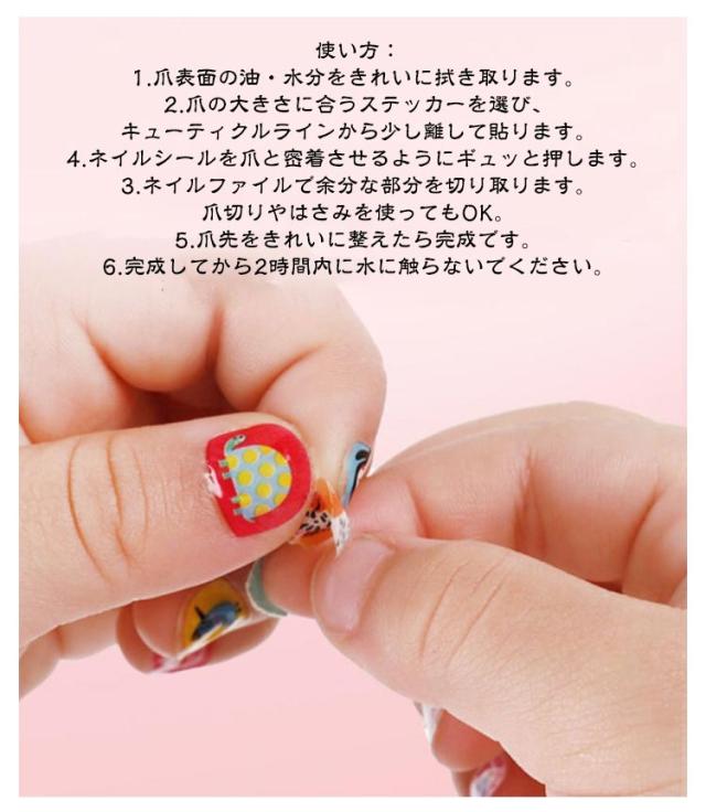 | いっぱい楽しめる504pcs・14種類(シート)セット。 キッズ 子供用ネイル。 貼るだけで簡単にネイルを楽しめるタイプ、直ぐに剥がせるので、お子様ネイルにぴったり。 お子様のちいさな爪にも貼りやすい、ちょうどいいサイズ。 お花や動物、アイスクリーム、ミツバチ、ハンバーガーなど女の子がときめくものがいっぱいに詰まった種類豊富なシセットです。日々デザインを変えながらネイルを楽しめます。 ちょうど良いサイズ〜小さな指・爪には最適です。お子様の誕生日のパーティーに適して、学校の活動、友達を贈呈して、友情を増進します。お子様のおしゃれをもっと楽しく、ワクワクするものにしたいから。 子供の誕生日パーティー、子供の日、ハロウィーン仮装小物、クリスマスのパーティーなどのためのギフトにぴったり。 爪が傷まないので、手爪、足爪、爪端あらゆる爪も適用できます。 使い方: 1.爪表面の油・水分をきれいに拭き取ります。 2.爪の大きさに合うステッカーを選び、キューティクルラインから少し離して貼ります。 4.ネイルを爪と密着させるようにギュッと押します。 3.ネイルファイルで余分な部分を切り取ります。爪切りやはさみを使ってもOK。 5.爪先をきれいに整えたら完成です。 6.完成してから2時間内に水に触らないでください。 | |
