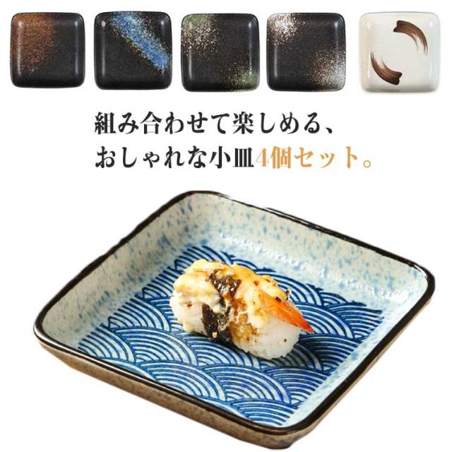 【4個セット】小皿 セット お皿 皿 食器 和食器 方形 醤油皿 薬味皿 珍味皿 フルーツ皿 菓子皿 小さい皿 食器セット セット食器 醤油入れ 珍味入れ 食器 和食 豆皿 セット 漬物皿 おしゃれ 電子レンジ 食器洗浄乾燥機対応