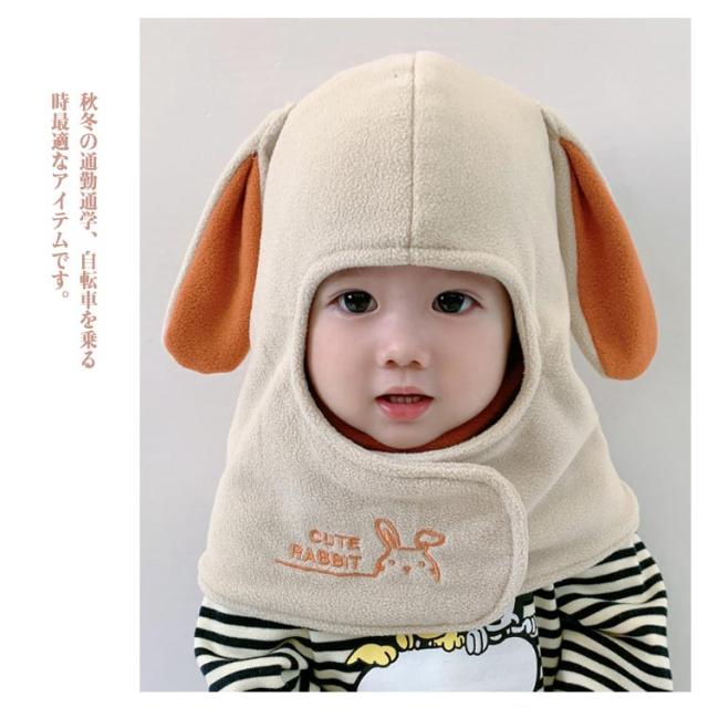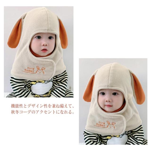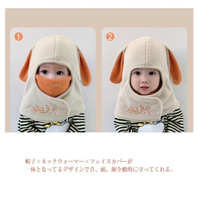 ネックウォーマー+帽子+フェイスカバーの一体型!ボアフリース キッズ 帽子 冬 フードマフラー スヌード もこもこ 子供 ベビー 赤ちゃん 厚手 男の子 女の子 防寒対策 あったか 秋 冬 兎耳 耳付き かわいい