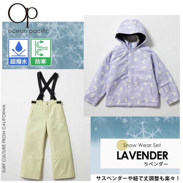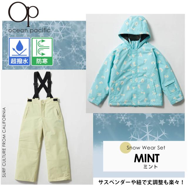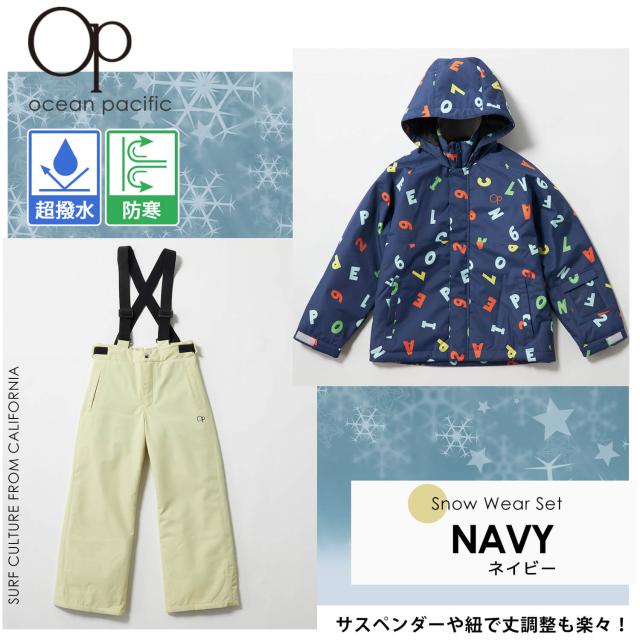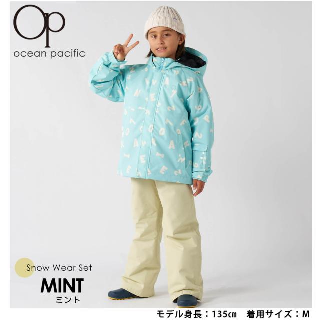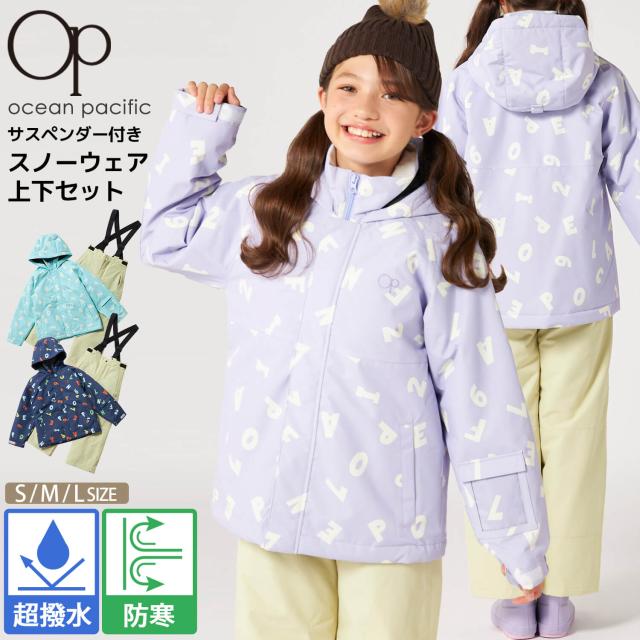 【35%OFF】スキーウェア キッズ 上下セット ジュニア 子供 OCEAN PACIFIC オーシャンパシフィック セパレート サイズ調整 女の子 男の子 英数字柄 スノーボードウェア スノーウェア 雪遊び スキー スノボ ソリ ジャケット パンツ 冬 S M L 2024fw
