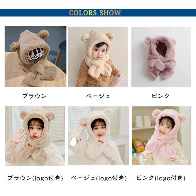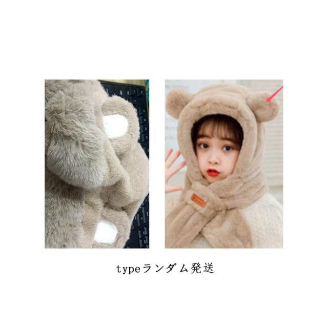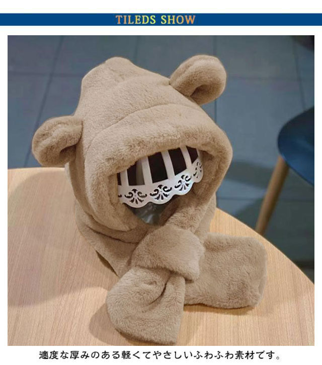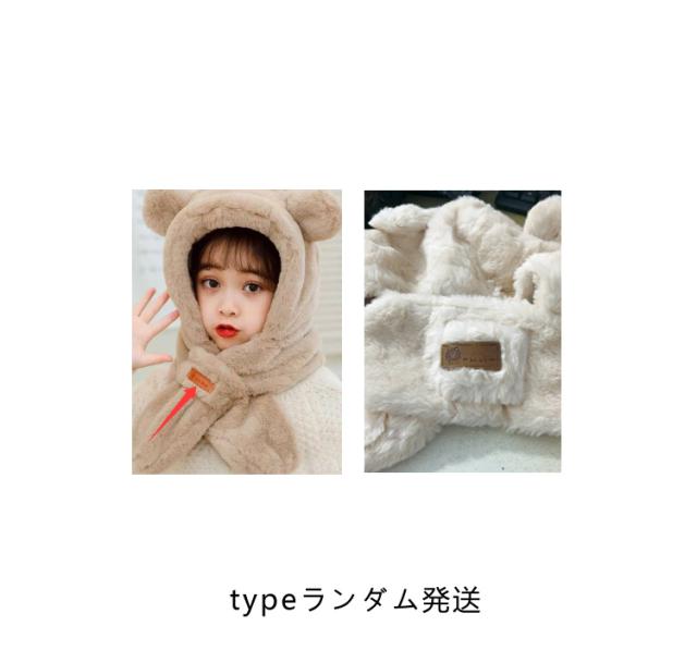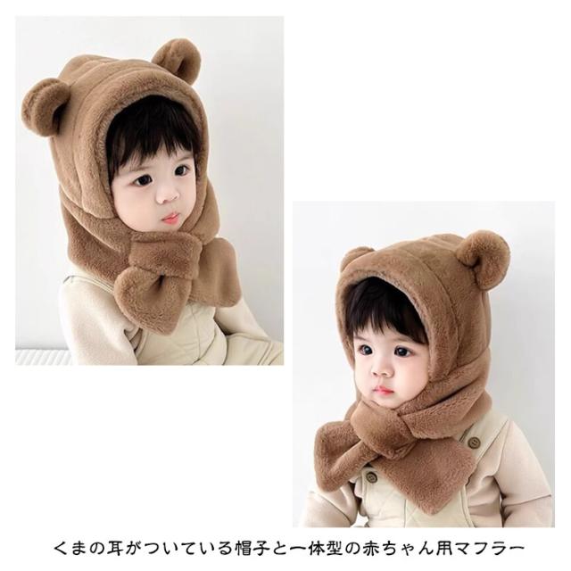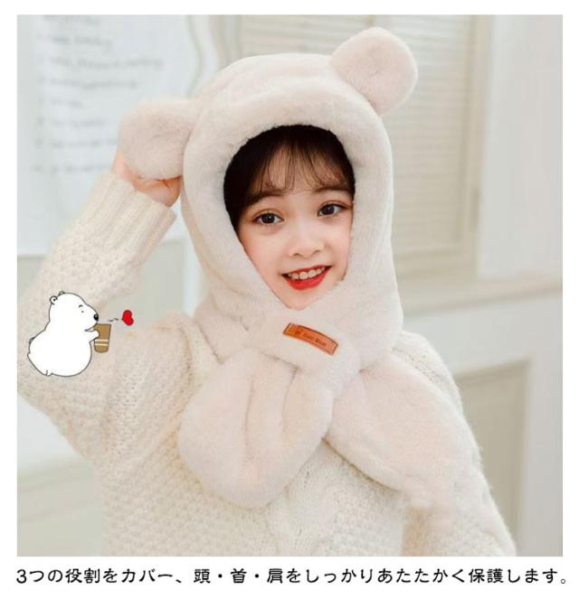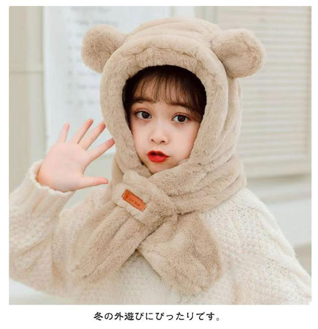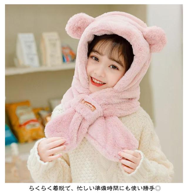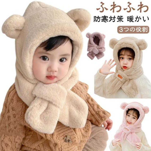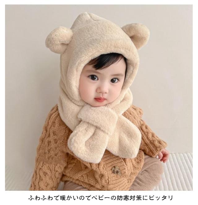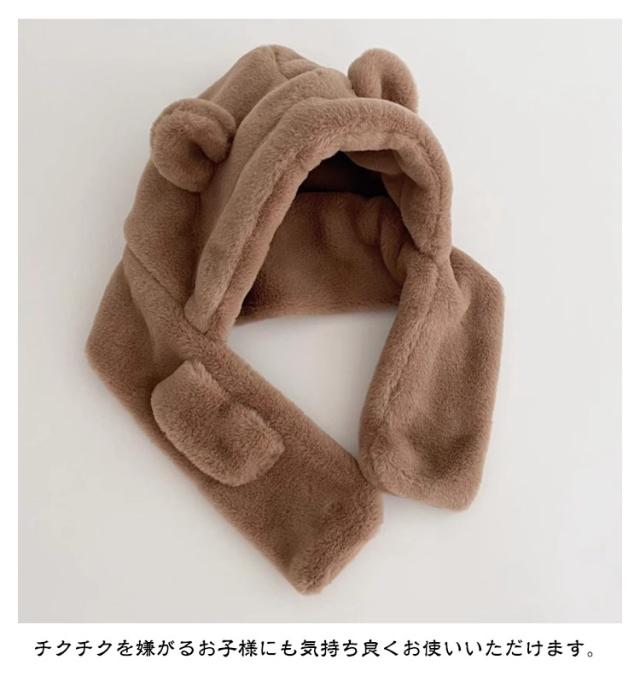 くまさん マフラー 帽子 ベビー 一体型マフラー イヤーマフ フード付き 冬 防寒 フードウォーマー 耳付き 男の子 女の子 クマ くま耳 ふわふわ もこもこ 可愛い ティペット 暖かい 赤ちゃん ベビーマフラー 送料無料