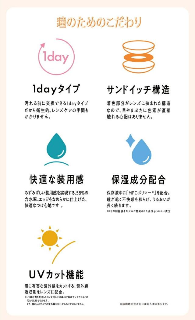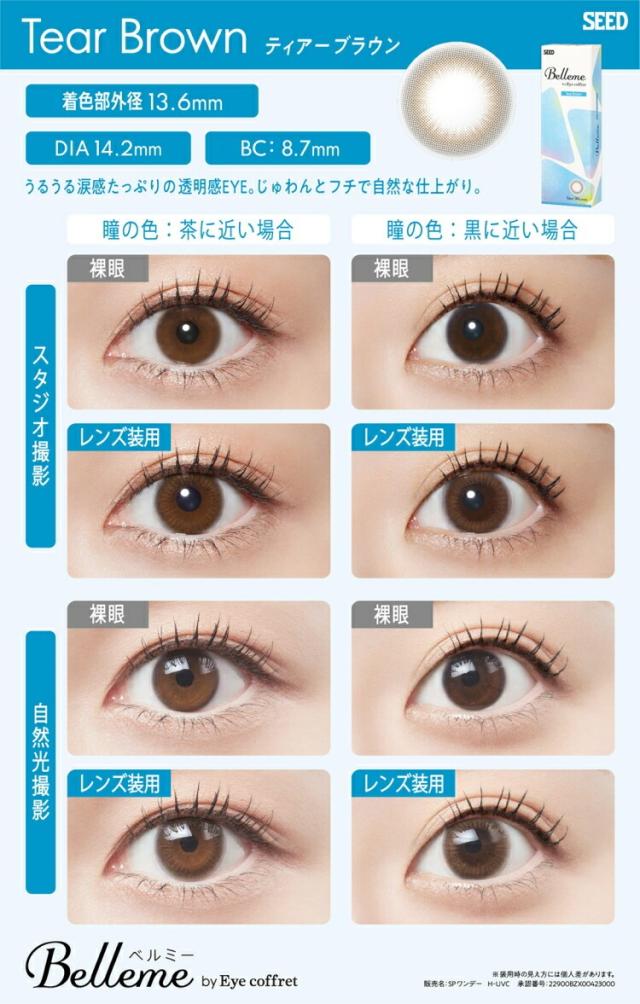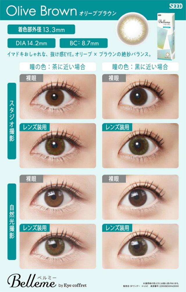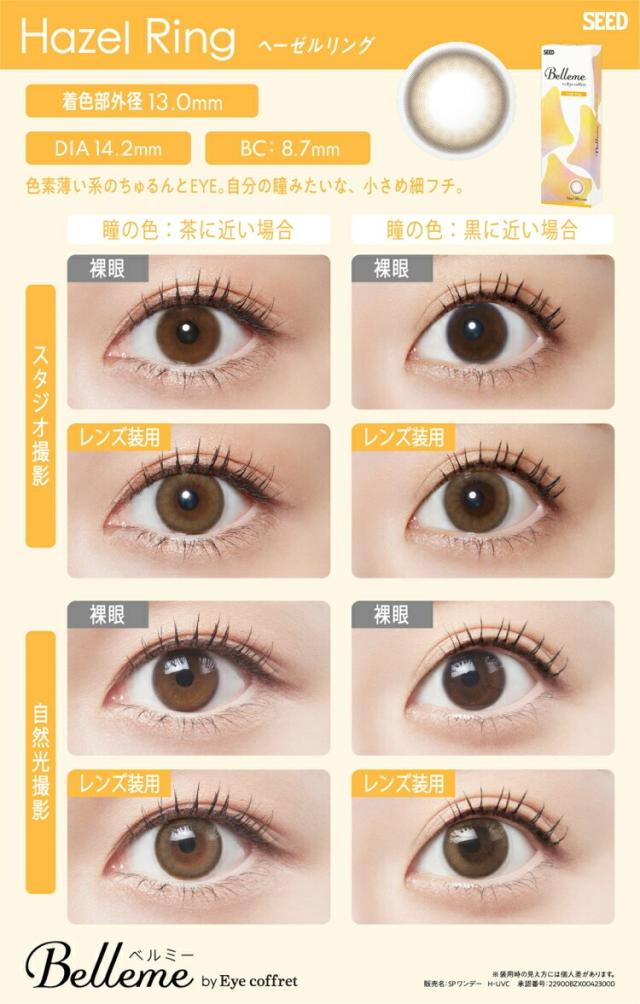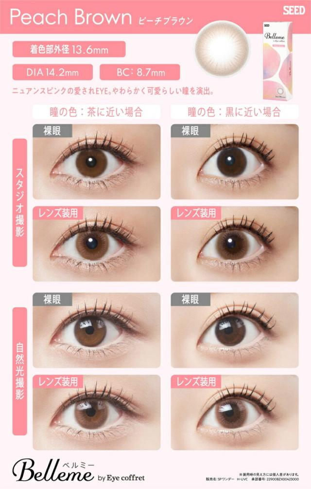 | カラー/着色部外径 | ティアーブラウン/13.6mm ピーチブラウン/13.6mm ベルブラウン/13.6mm ヘーゼルリング/13.0mm オリーブブラウン/13.3mm |