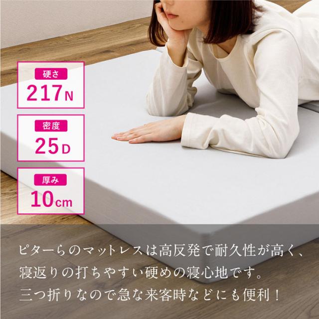 マットレス ダブル 高反発 単品 137x197cm 3つ折りマットレス PITARA(ピターら) 高反発マットレス 厚さ10cm 敷き布団 ベッドマットレス 硬め 折りたたみ コンパクト おしゃれ 高反発ウレタン シンプル