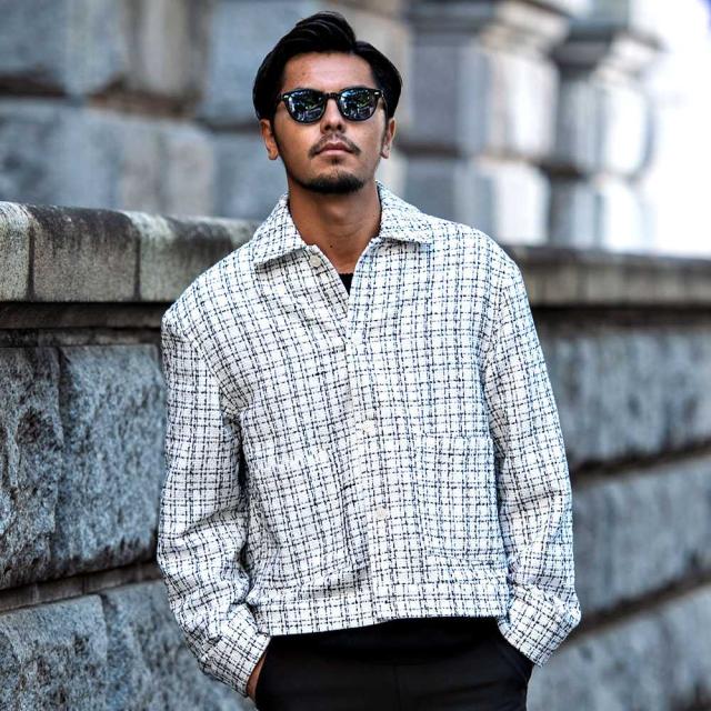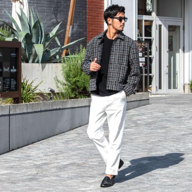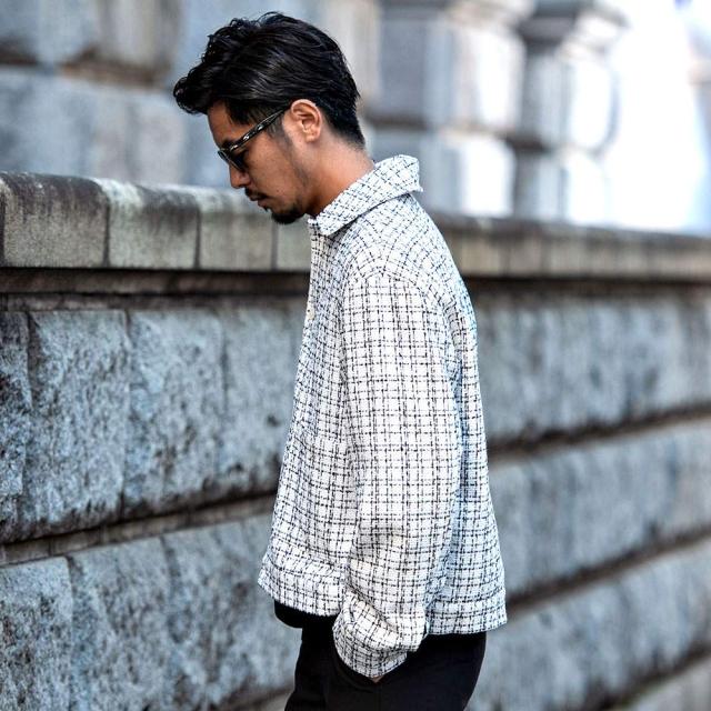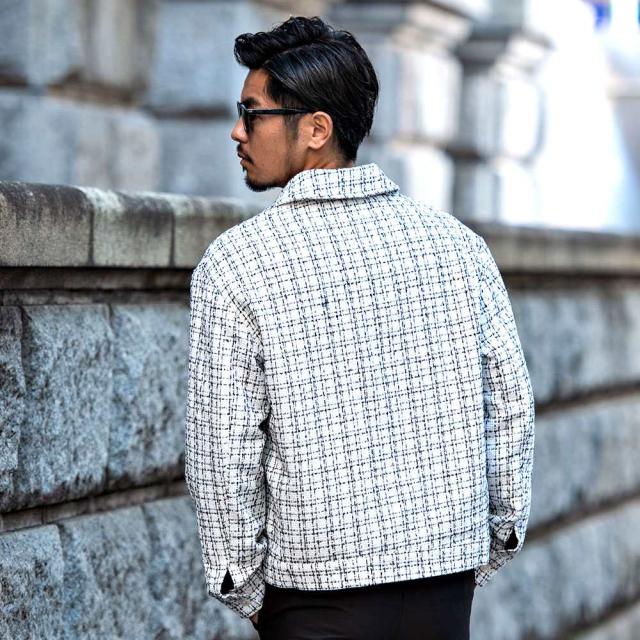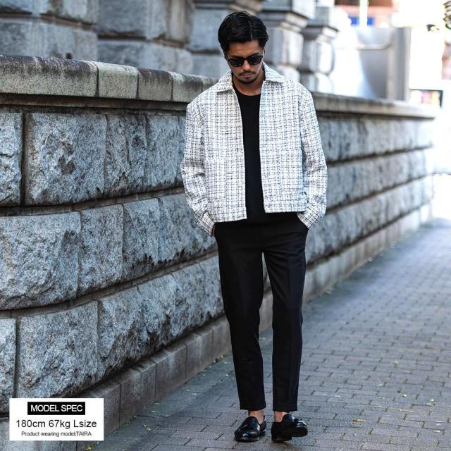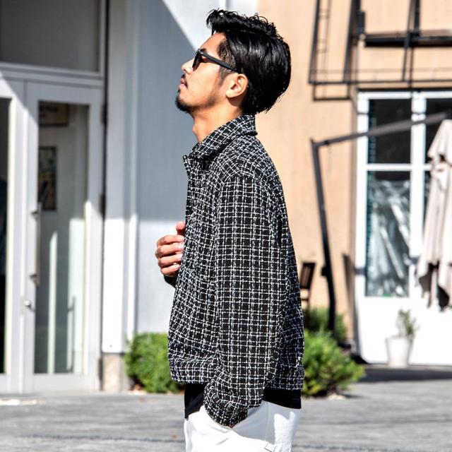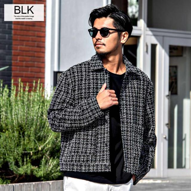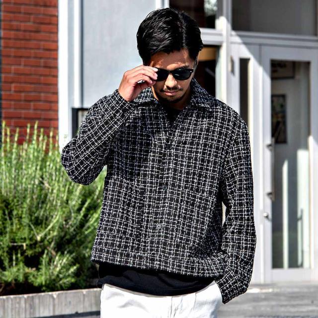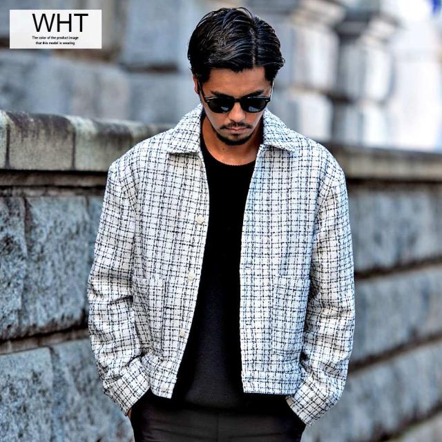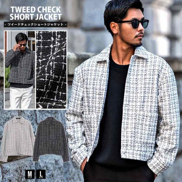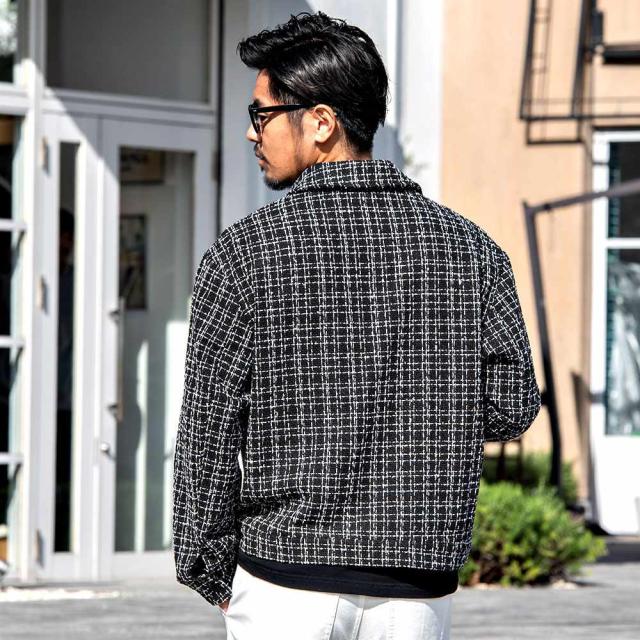 ジャケット メンズ ブルゾン アウター おしゃれ ツイード チェック ショート丈 短丈 大きいサイズ ビッグシルエット オーバーサイズ 総柄 ブラック ホワイト 黒 白 M L カジュアル スポーティ ストリート ストリート系 秋 冬 秋服 冬服 父の日 父の日ギフト 父の日プレゼント 20代 30代 40代 メンズファッション 東京 プレゼント 誕生日 記念日 贈り物 ギフト配送について