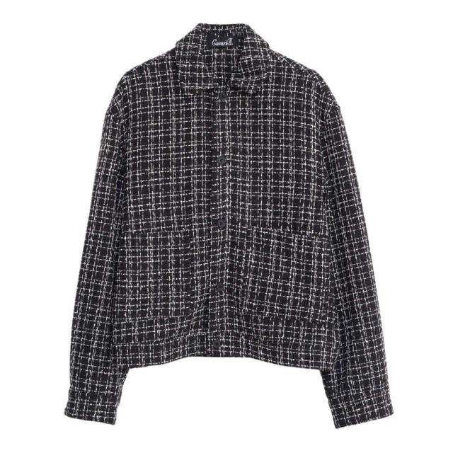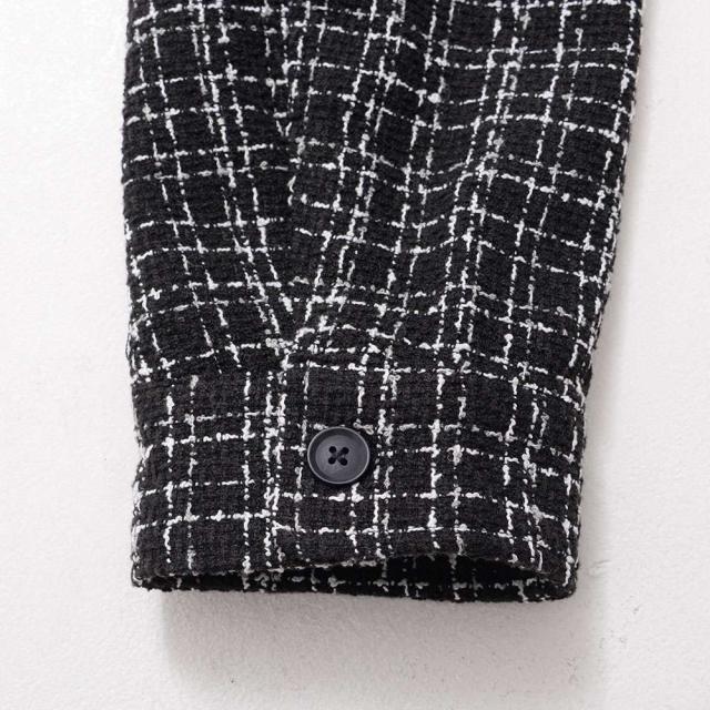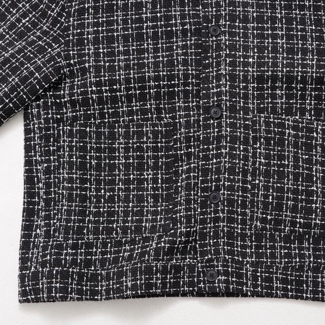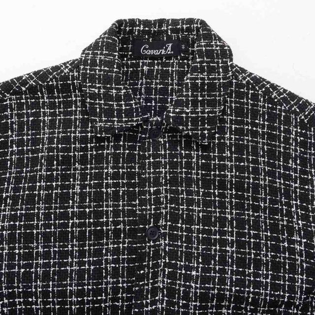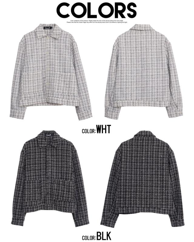 ジャケット メンズ ブルゾン アウター おしゃれ ツイード チェック ショート丈 短丈 大きいサイズ ビッグシルエット オーバーサイズ 総柄 ブラック ホワイト 黒 白 M L CavariA 20代 30代 40代 ユニセックス 男性 男 服 秋 冬 秋冬 秋服 ファッション [CARE24-41]