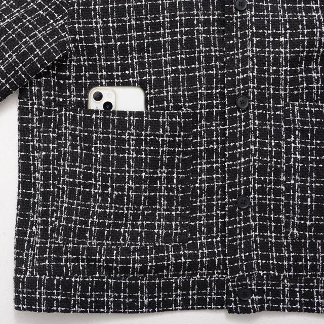 定番で合わせやすいツイードチェック柄でブラックとホワイトの2色展開です。