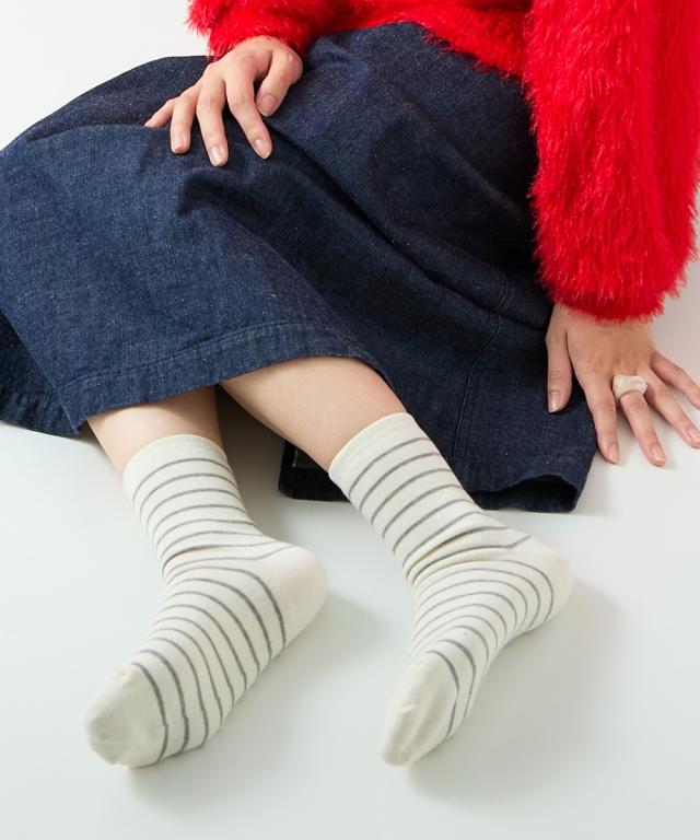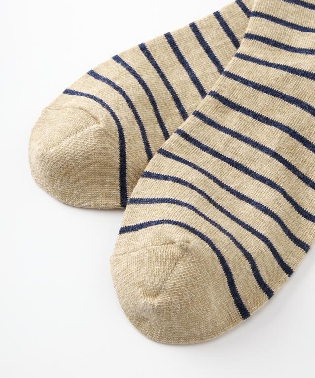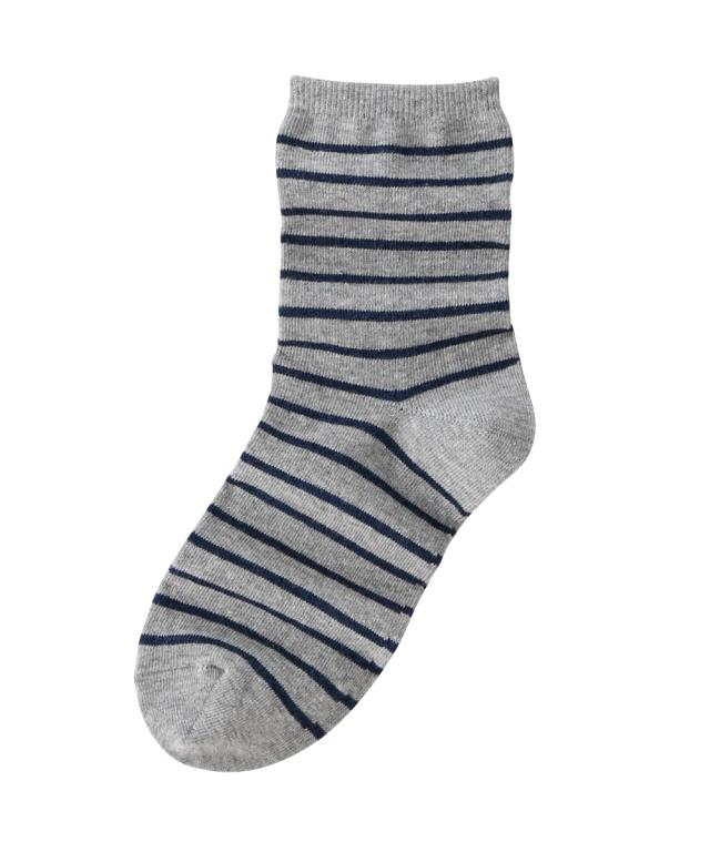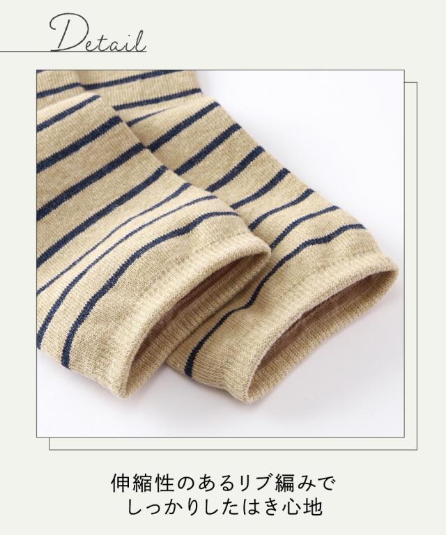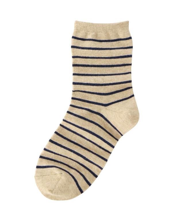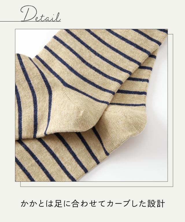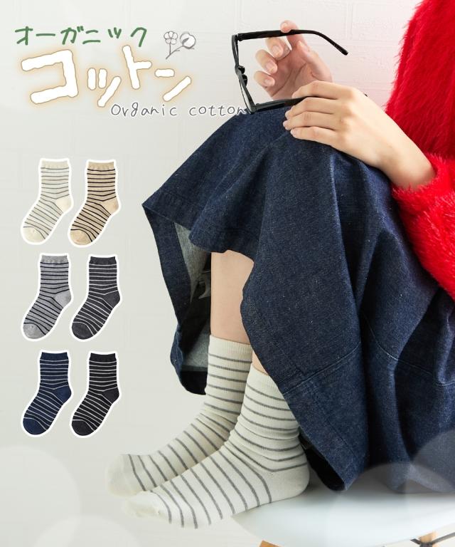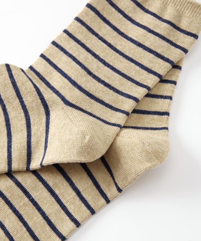 日本製 オーガニックコットン混 ボーダークルーソックス