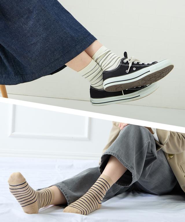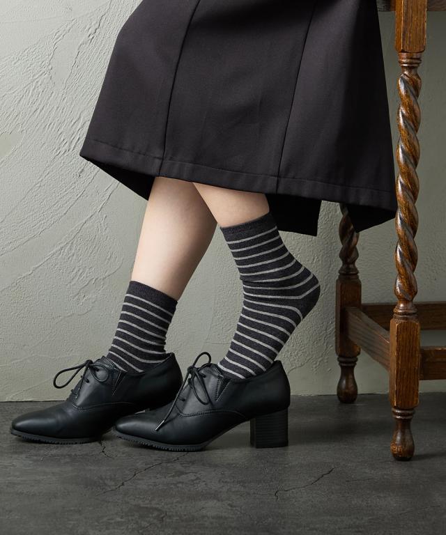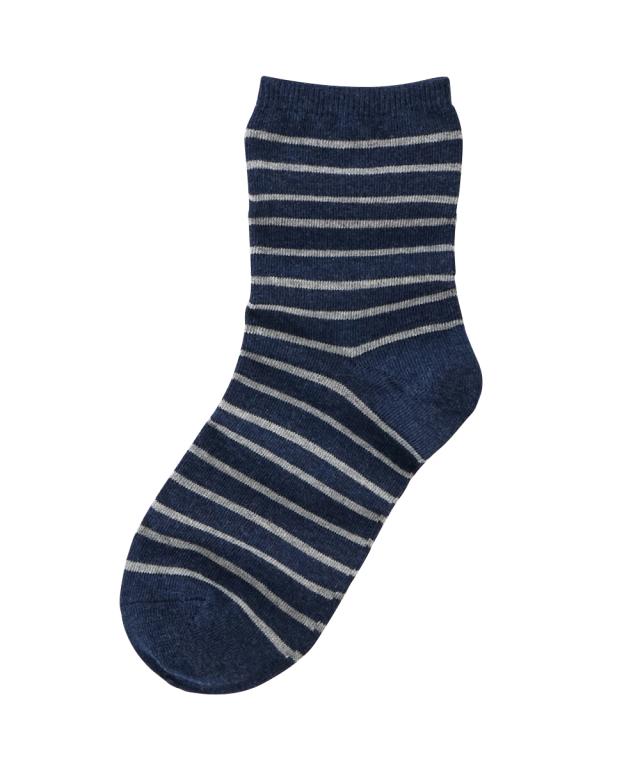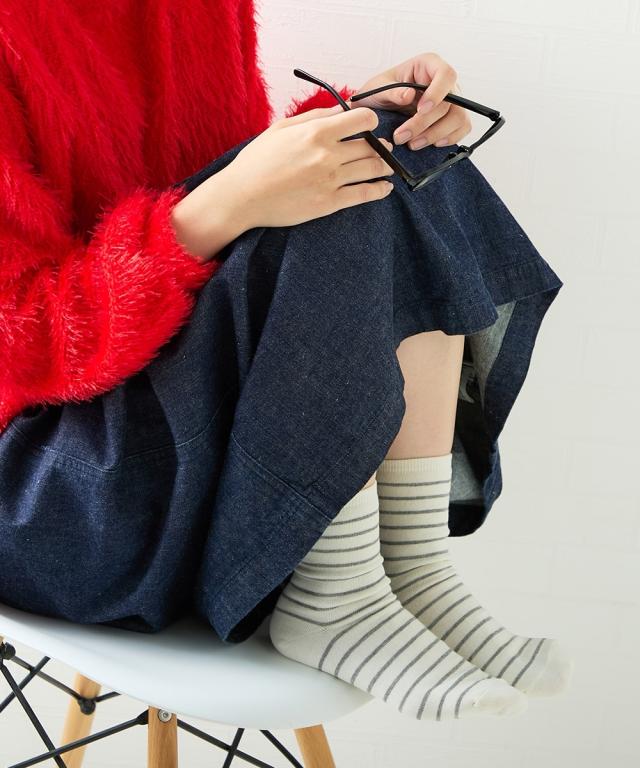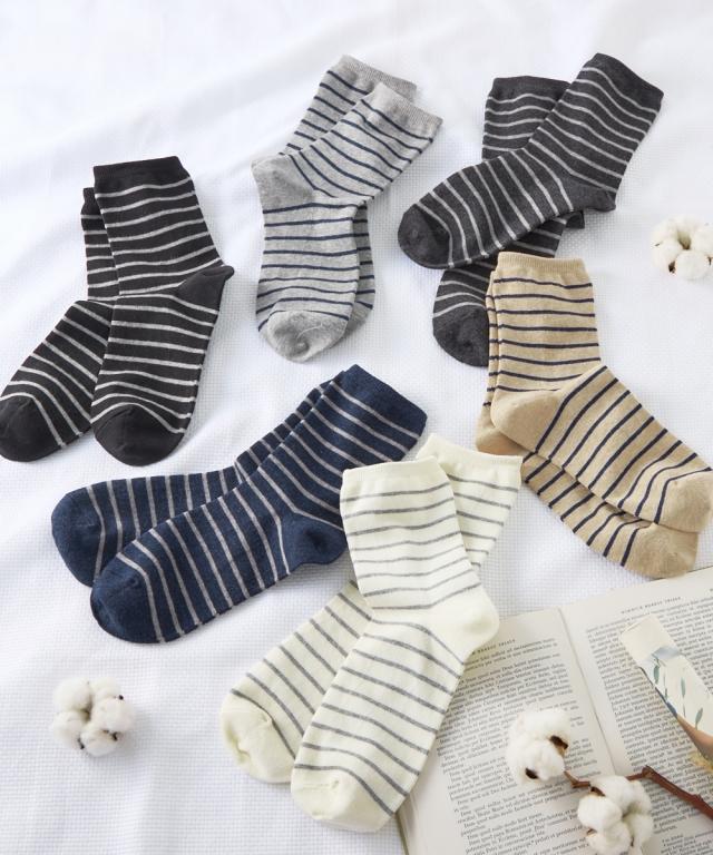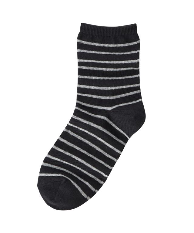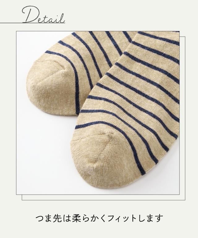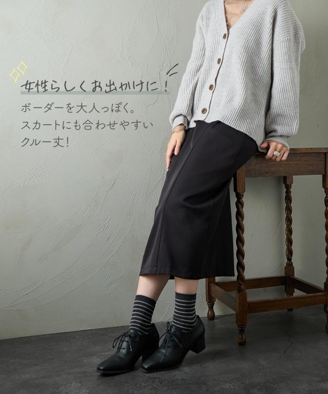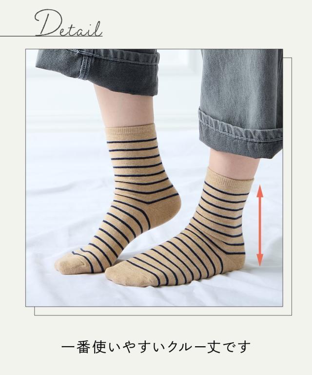 日本製 オーガニックコットン混 ボーダークルーソックス