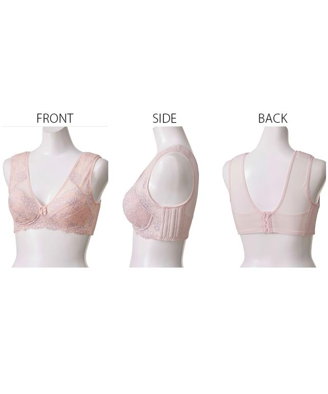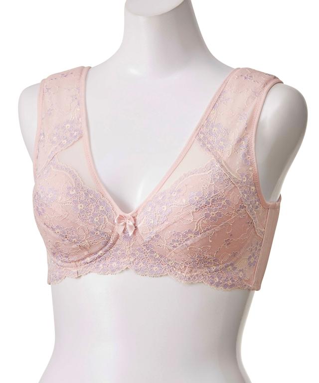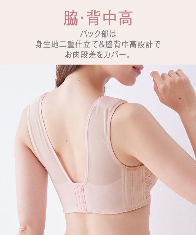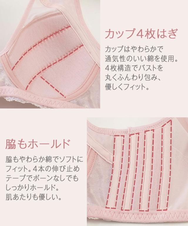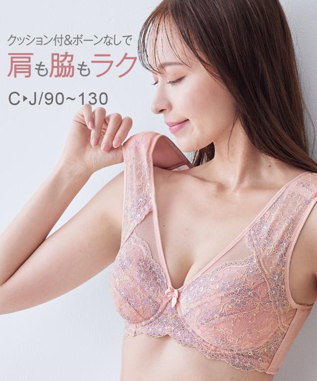 ノンワイヤーブラジャー 大きいサイズ レディース 肩裏 クッション 付肩にも脇にも負担をかけない脇ボーン無しノンワイヤーフルカップ ブラジャー 脇背中高すっきり 日本製 レース
