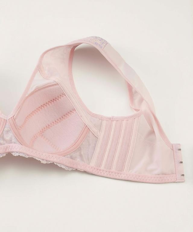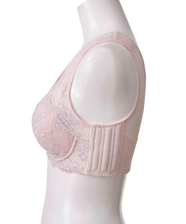 肩裏クッション付肩にも脇にも負担をかけない脇ボーン無しノンワイヤーフルカップブラジャー(脇背中高すっきり)(日本製レース)