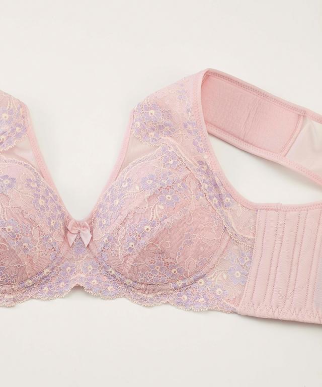 品質=ナイロン・ポリウレタン・その他 フルカップ ワイヤーなし 後ホック3段3列 ボーンなし パッドなし 柄が多少異なる場合があります。 レースは日本製 原産国:中国製 洗濯表示:手洗い ※お洗濯は、必ず取り扱い表示にしたがってください。