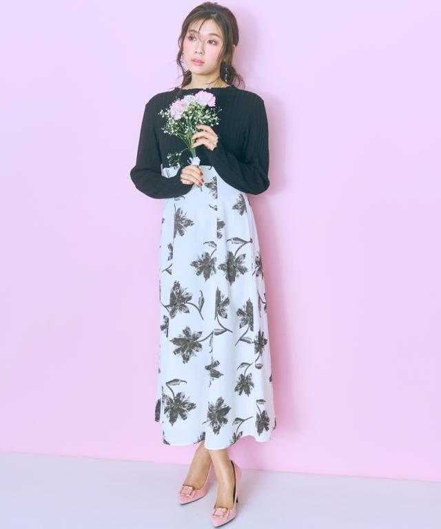 品質:[身頃部]ポリエステル70%・綿20%・レーヨン7%・ポリウレタン3% [スカート部]ポリエステル100% 柄の出方が多少異なる場合があります。