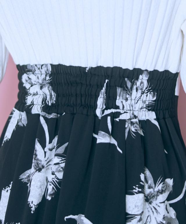 ワンピース ロング マキシ 大きいサイズ レディース ドッキング花柄 marun ひざ下 6L/8L/10L ニッセン nissen