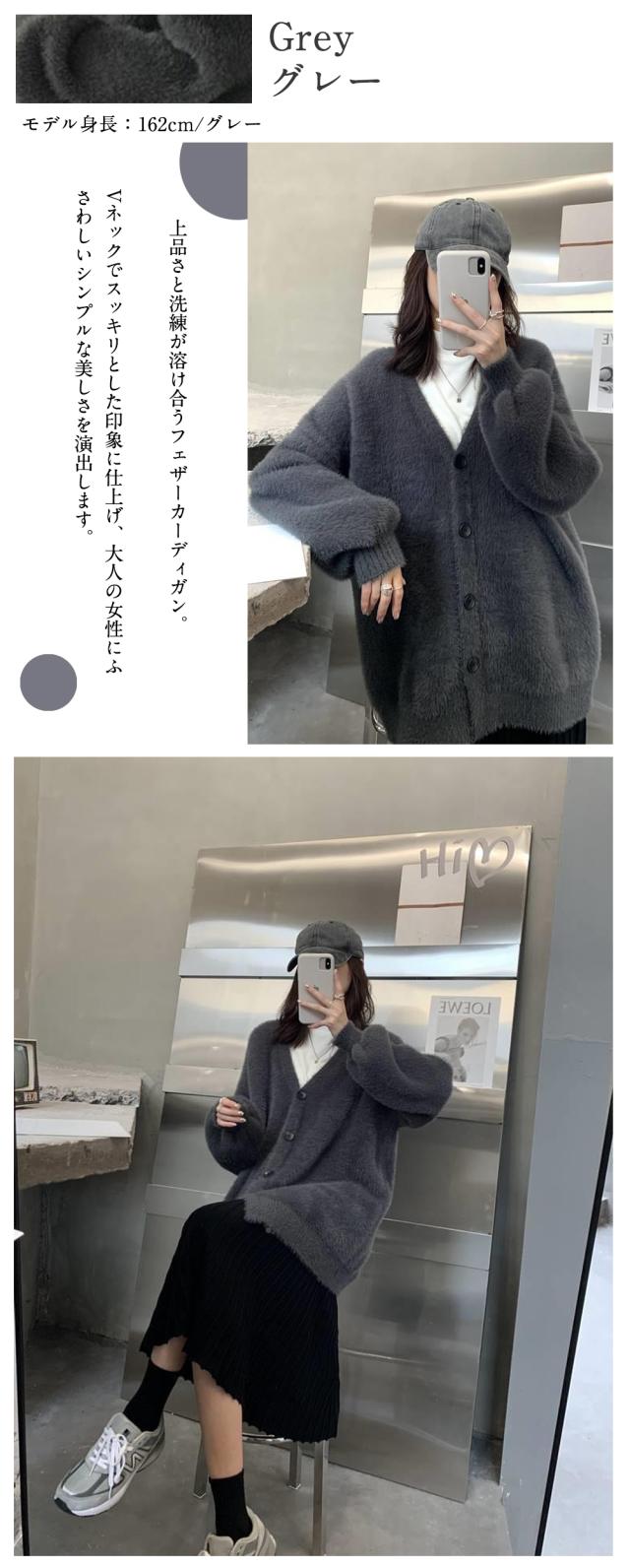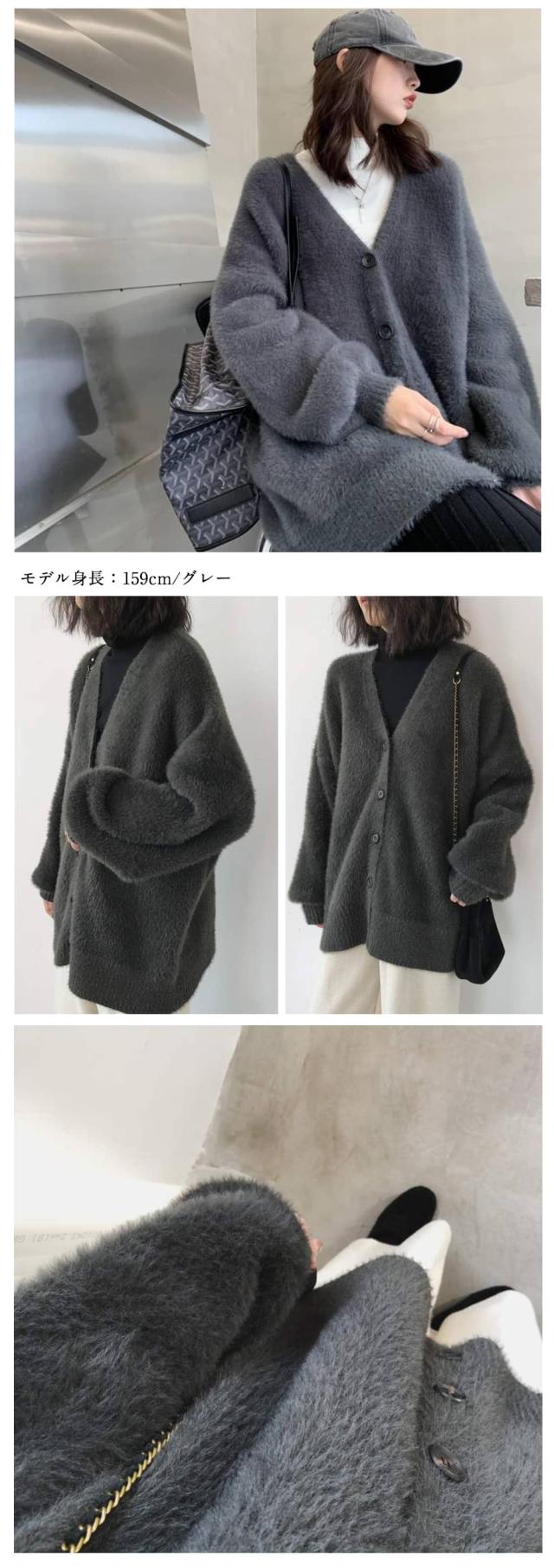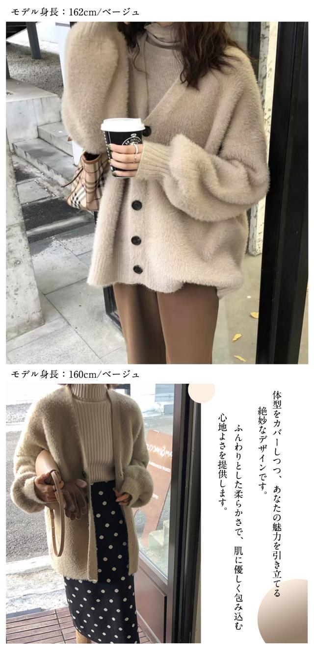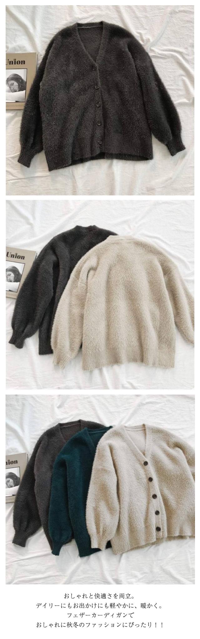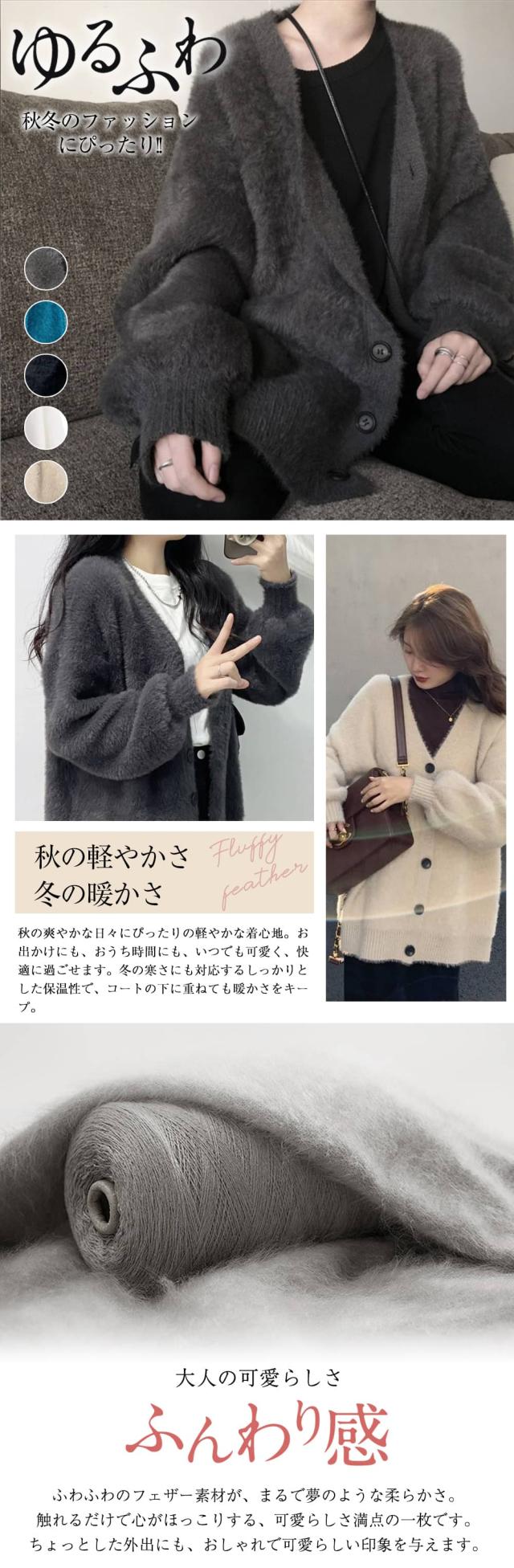 カーディガン ニット レディース シャギーニット Vネック ジャケット トップス ニットコート フェザーカーディガン ニットカーデ ゆるニット