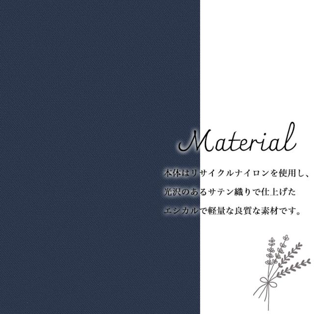 | 素材 | リサイクルナイロン100×210dn サテン/PU加工/牛革 |
