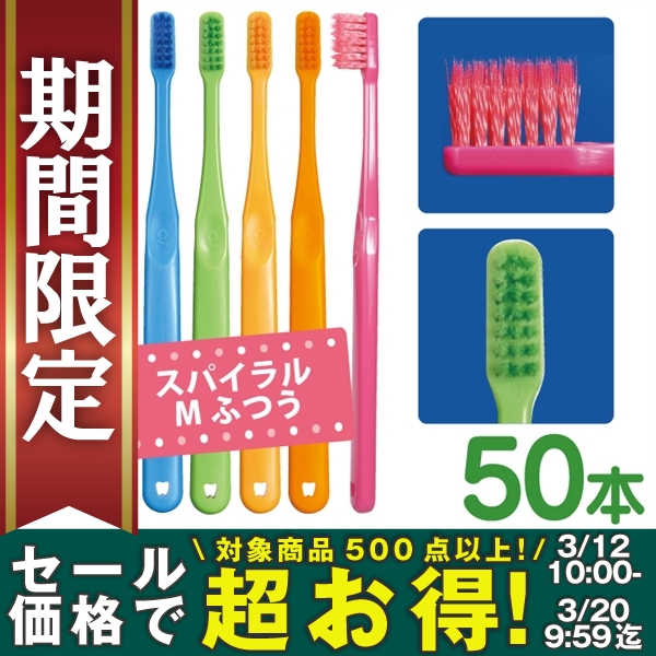 【★30%OFF 3/20 9:59迄】【送料無料】Ci PRO PLUS /スパイラル M(ふつう) 50本 プロプラス スパイラル【Ciメディカル 歯ブラシ】日本製