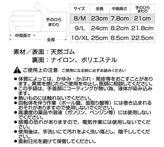 素材 手の平:天然ゴム/手袋繊維:ナイロン・ポリエステル