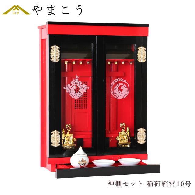 神棚 稲荷 インテリアのように 上塗り 箱宮 薄型 お稲荷専用 稲荷神明 一社宮 モダン 神具セット 黄金稲荷 一対 (代引き決済不可商品)