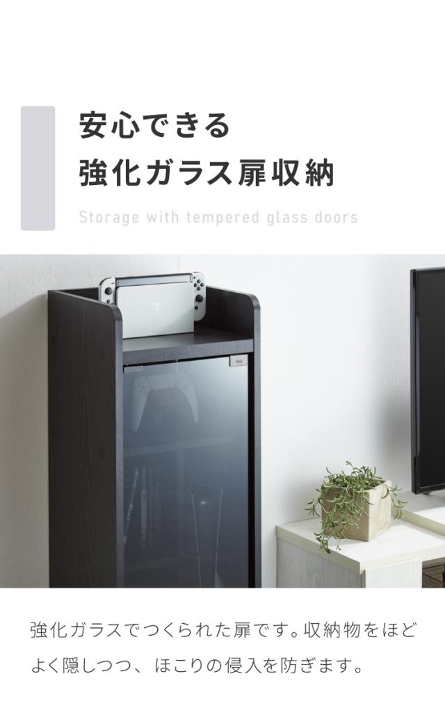 隠せる ゲーム機収納ラック Switch/PS5対応 幅32 高さ96.5 ゲーム機 本体 コントローラー ソフト 収納 ラック 収納棚 強化ガラス扉 キャスター 引き出し 引出し おしゃれ(代引不可)【送料無料】