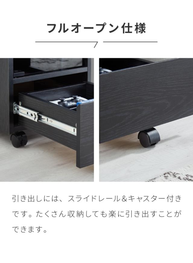 ■引出しはレール付で出し入れがスムーズ。奥の物が取り出しやすいフルオープン仕様です。