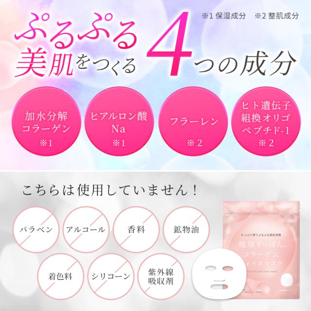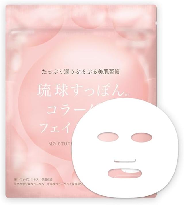 コラーゲンフェイスマスク 10枚入 美容 うるおいキープ ハリ ツヤ しっとり すっぽんエキス たっぷり美容液 しまのや 琉球すっぽん コラーゲン フェイスマスク 送料無料