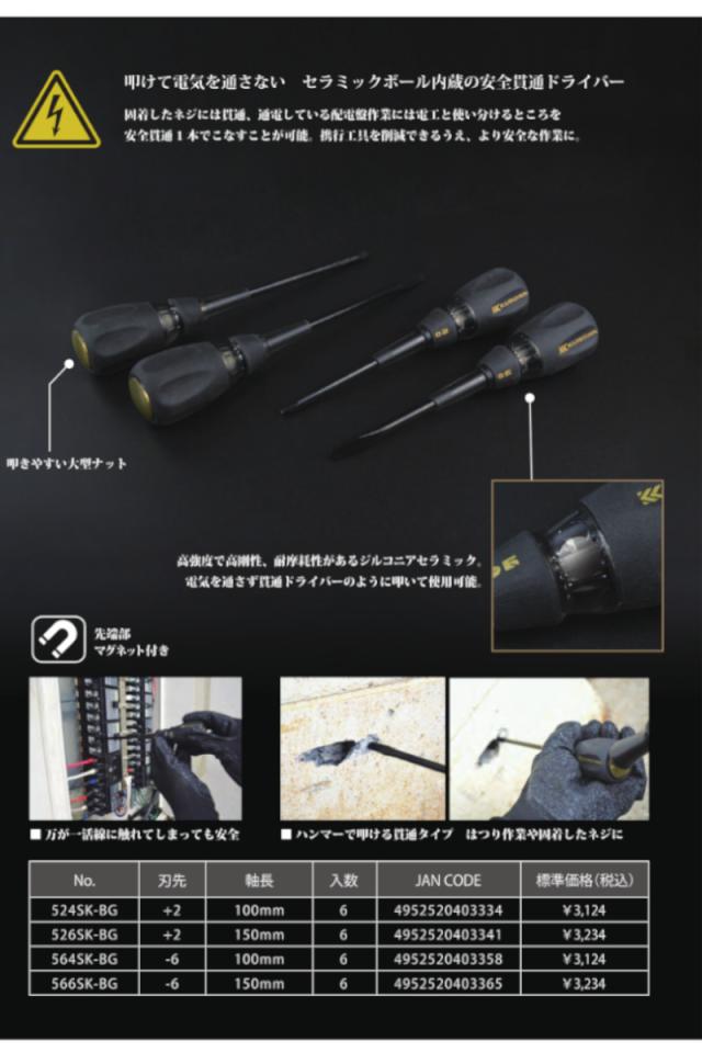 フジ矢 526SK-BG KUROKIN安全貫通プラスドライバ(+)2X150 ブラック 黒金(クロキン)