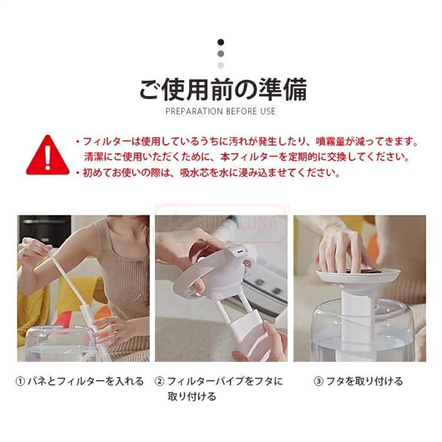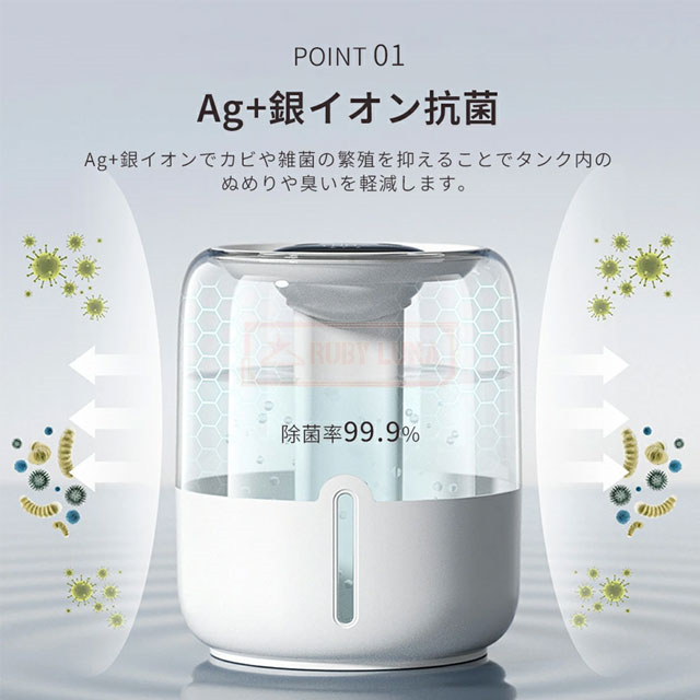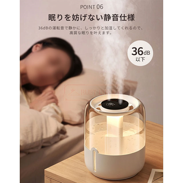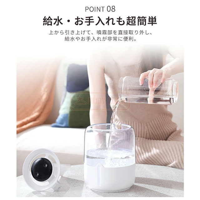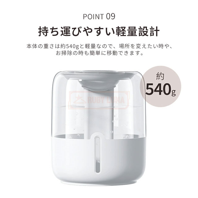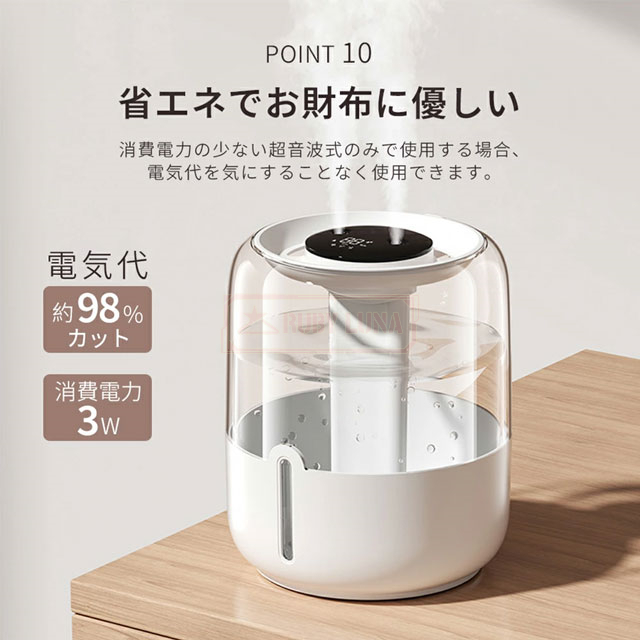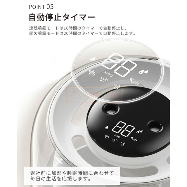 | 熱くならないので安全安心 | ◆ミストが熱くならない超音波式なので、小さなお子さまやペットのいるご家庭でも安心です。 |