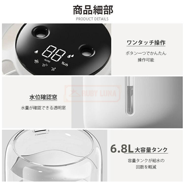 | リアルタイムの湿度確認 | ◆湿度を検知するセンサーを搭載しており、お部屋の湿度が一目で分かります。 |