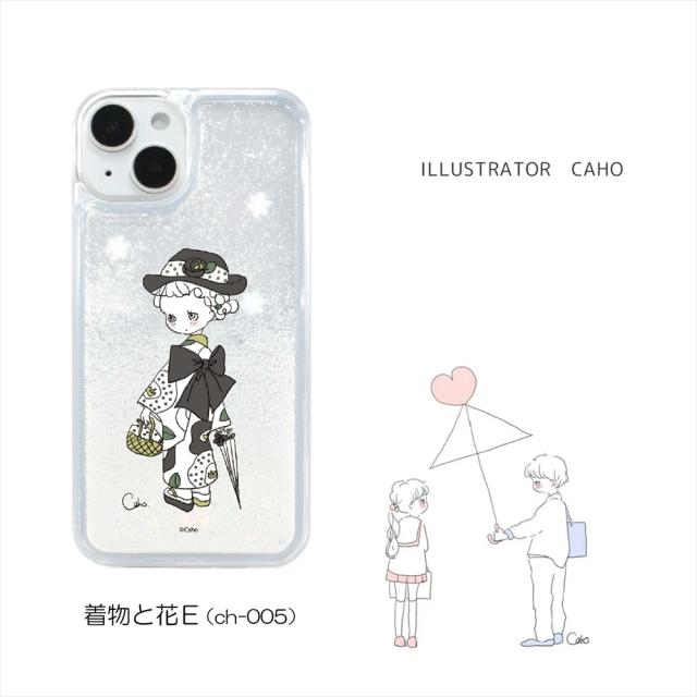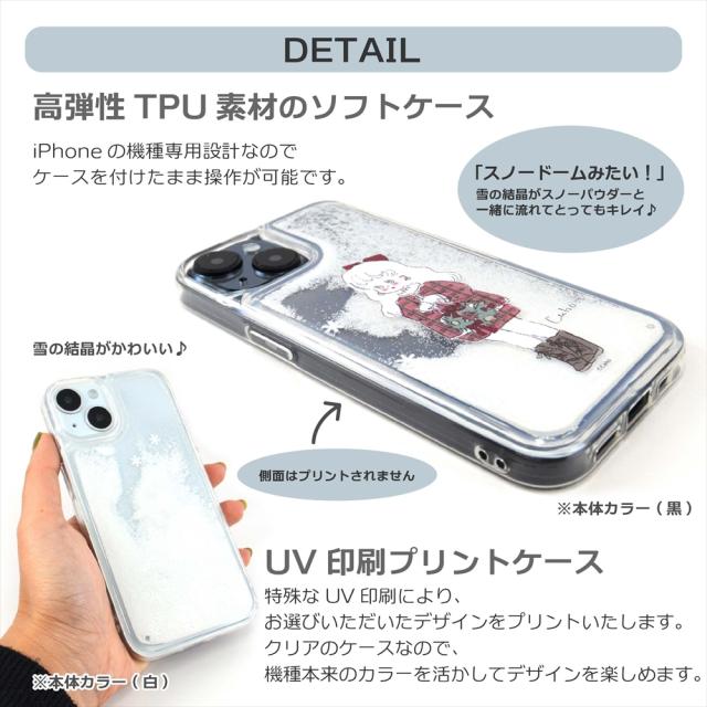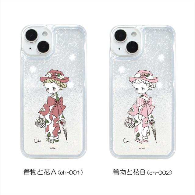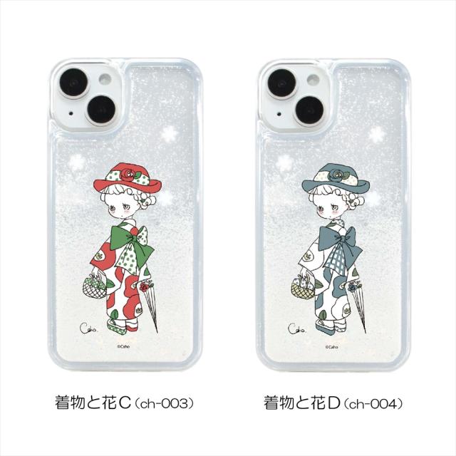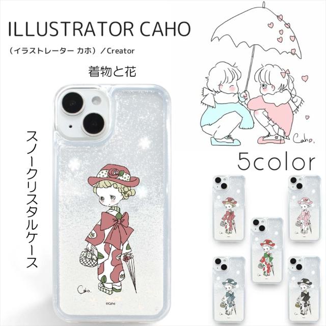 Caho プリント スノークリスタル ケース / 着物と花 スマホケース iPhone16 ケース 16Pro 16Plus 16Promax iPhone15 iPhone14 Pro iPhone13 SE 第3世代 第2世代 アイフォン カバー iphone8 7 透明 クリア ケース スノードーム 流れる 雪 結晶 かわいい オシャレ 和柄 和