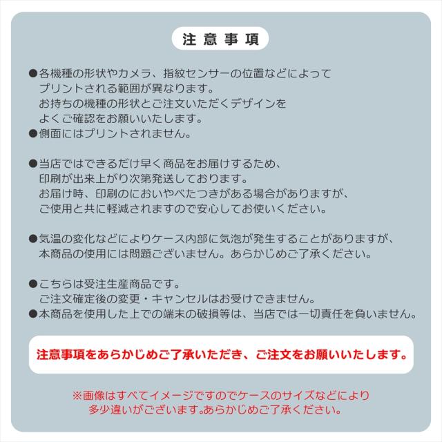 ※※デザインによっては一部プリントが無くなってしまう場合がございます。お持ちの機種の形状とデザインをよくご確認いただきご注文をお願いいたします。