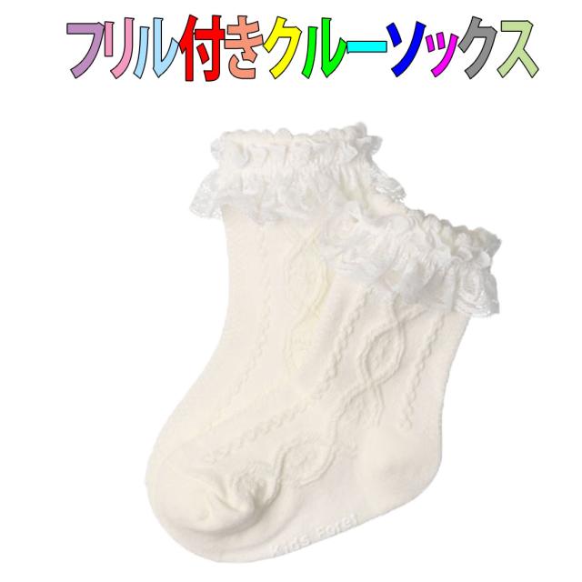 フリル付きクルーソックス ホワイト×レース柄 16cm〜18cmジュニアソックス キッズソックス 靴下 子供 幼稚園 小学校 通園 通学 入園 入学 入園式 入学式の説明