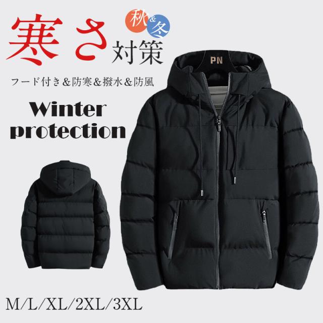 中綿コート メンズ ダウンジャケット 中綿入り フード付き ダウンコート 防寒 撥水 防風 中綿ジャケット 秋冬 軽量 アウトドア お釣り 寒さ対策