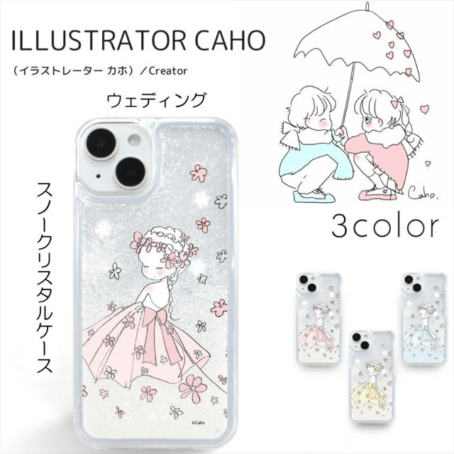 Caho プリント スノークリスタル ケース / ウェディング スマホケース iPhone16 ケース 16Pro 16Plus 16Promax iPhone15 iPhone14 Pro iPhone13 SE 第3世代 第2世代 アイフォン カバー iphone8 7 透明 クリア ケース スノードーム 流れる 雪 結晶 かわいい オシャレ ドレス