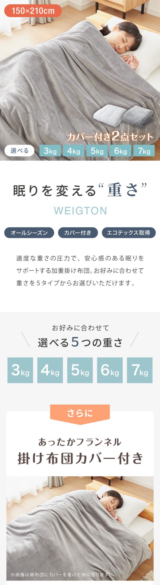 加重掛け布団 フランネルカバーセット シングルロング 3kg 4kg 5kg あったか 加重布団 フランネル掛布団カバー 150×210cm 重い布団 重力 冬用 寝具 毛布 冬 防寒 洗濯可 無地 カバー 軽い 掛け布団