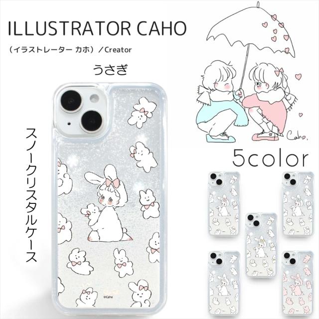 Caho プリント スノークリスタル ケース / うさぎ スマホケース iPhone16 ケース 16Pro 16Plus 16Promax iPhone15 iPhone14 Pro iPhone13 SE 第3世代 第2世代 アイフォン カバー iphone8 7 透明 クリア ケース スノードーム 流れる 雪 結晶 かわいい オシャレ リボン