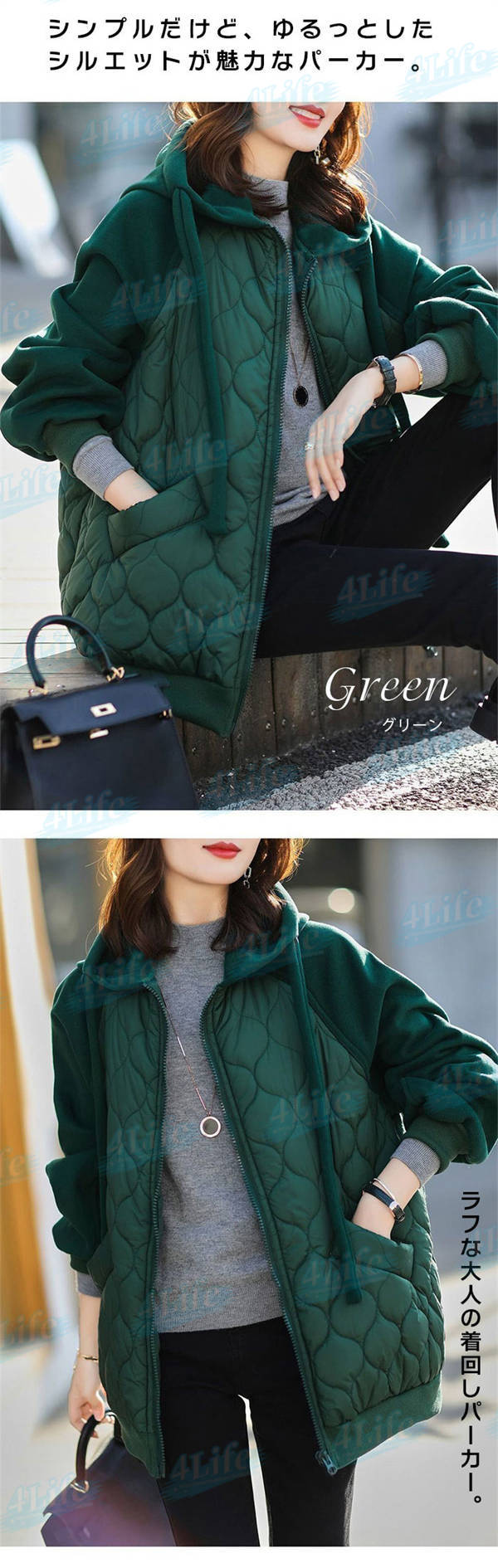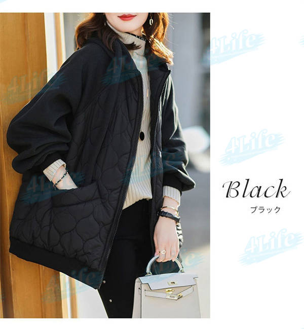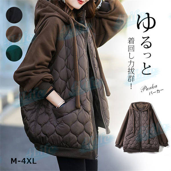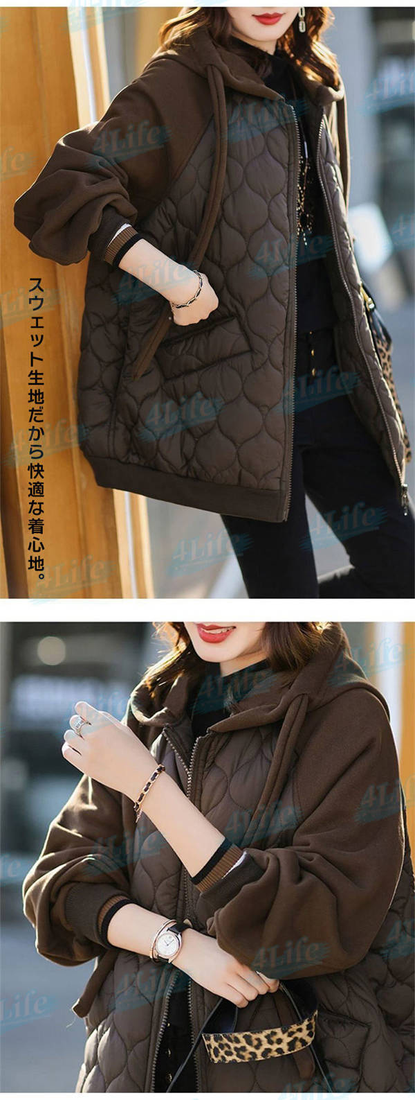 ブルゾン レディース 秋冬 ジャケット 長袖 中綿 キルティングトップスアウター 厚手 ゆったり オーバーサイズ 大きめ ウインドブレーカー マウンテンパーカー ジップアップ ジャンパー スウェット 暖かい バイカー 可愛い 切り替え