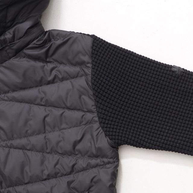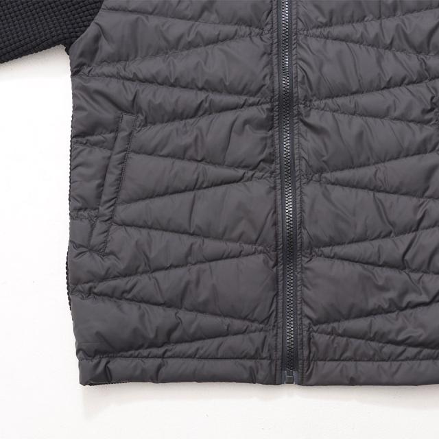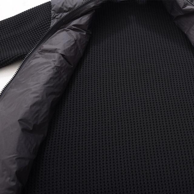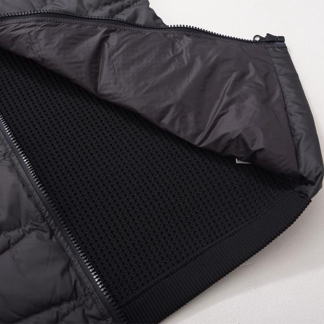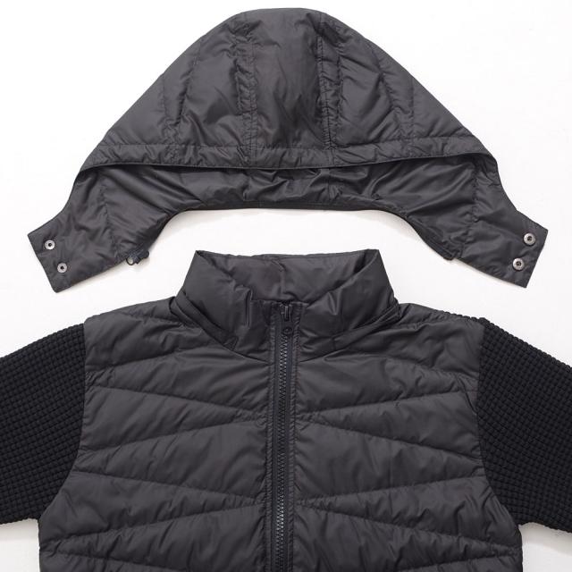 袖をニット素材で切り替え動きやすさと保温性を両立させたニット切替ダウンジャケット。