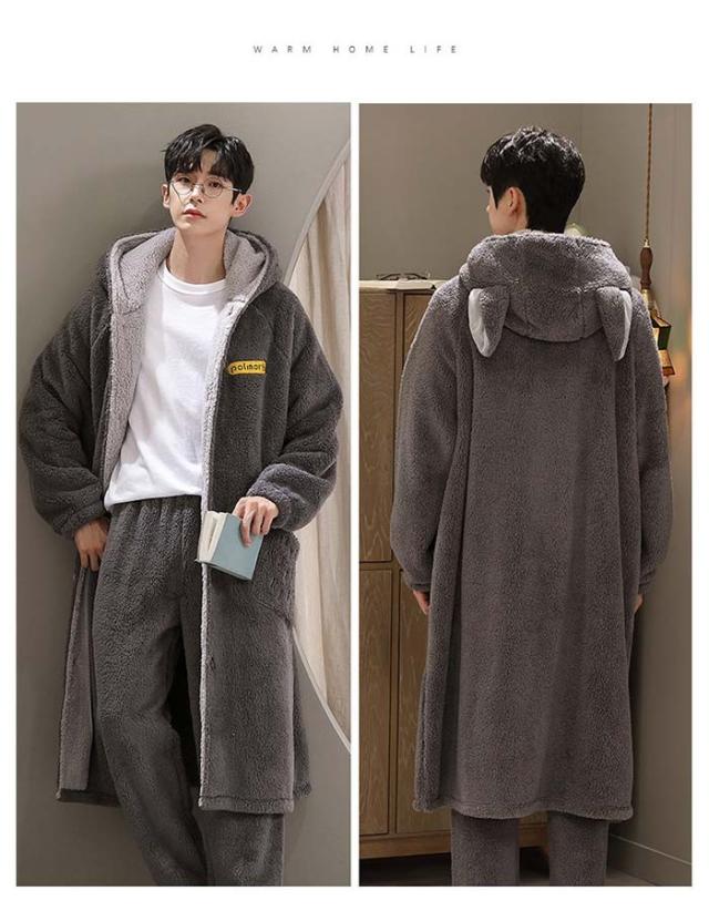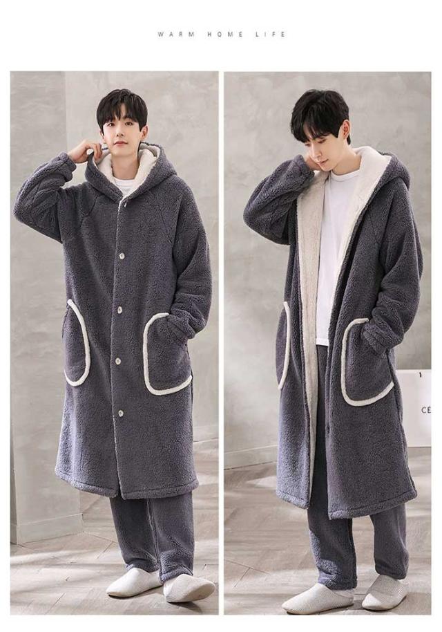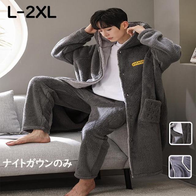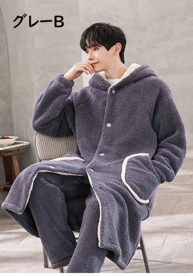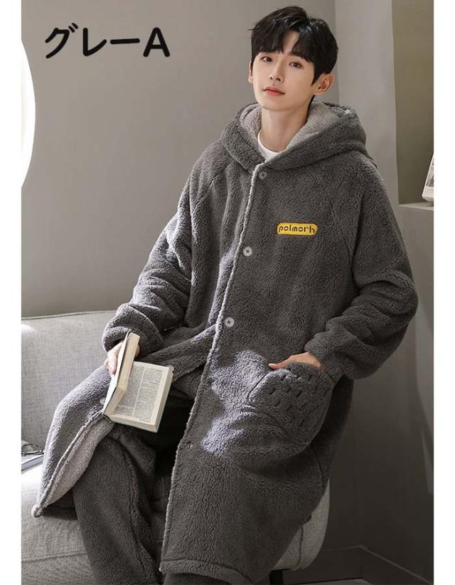 ルームウェア もこもこ バスローブ メンズ パジャマ 冬 長袖 ナイトガウン 着る毛布 前開き フード付き パジャマ 寝巻き 裏起毛 部屋着 プレゼント 暖かい ギフト お風呂上り dh003m6m6m6