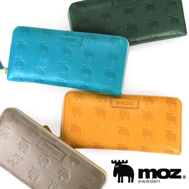 moz モズ 長財布 レディース ラウンドファスナー 本革 大容量 ラウンドジップ カードたくさん 仕切多い マチあり3室 YKK irregular イレギュラー Elk エルク 型押し 使いやすい 北欧 牛革 経年変化 スウェーデン sweden ヘラジカ 86017