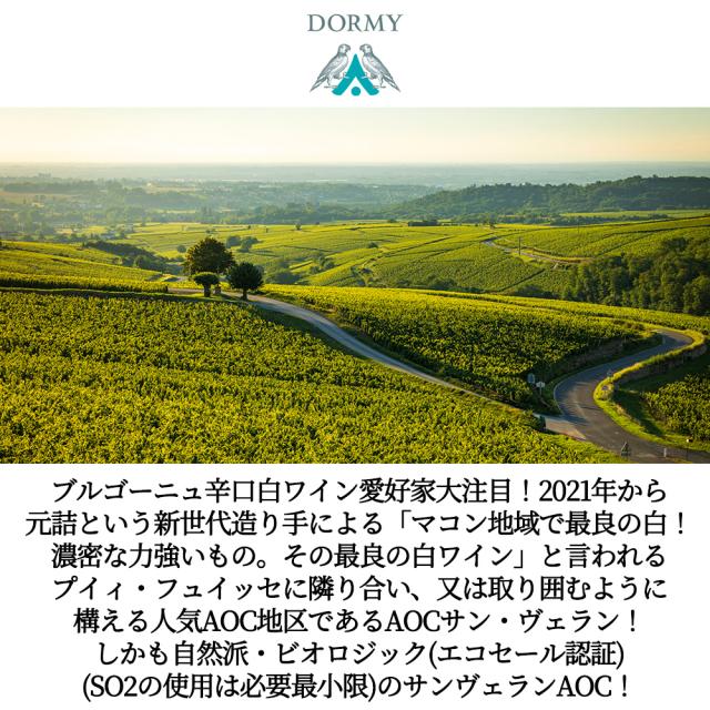 ブルゴーニュ辛口白ワイン愛好家大注目!2021年から 元詰という新世代造り手による「マコン地域で最良の白! 濃密な力強いもの。その最良の白ワイン」と言われる プイィ・フュイッセに隣り合い、又は取り囲むように 構える人気AOC地区であるAOCサン・ヴェラン! しかも自然派・ビオロジック(エコセール認証) (SO2の使用は必要最小限)のサンヴェランAOC!