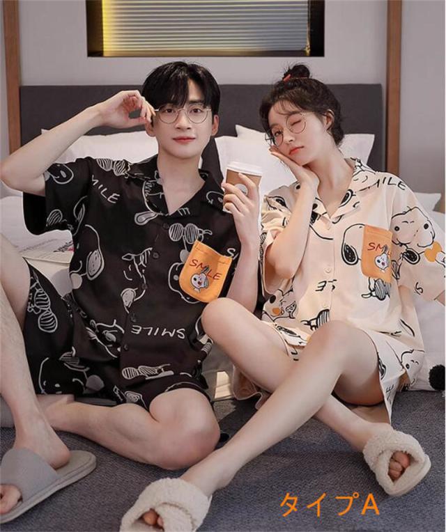 春夏 スヌーピー ペアパジャマ レディース パジャマ ルームウェア ペアルック カップル パジャマ メンズ レデイース スヌーピー 寝巻き 男女セット 結婚祝い お揃い 部屋着 6タイプ